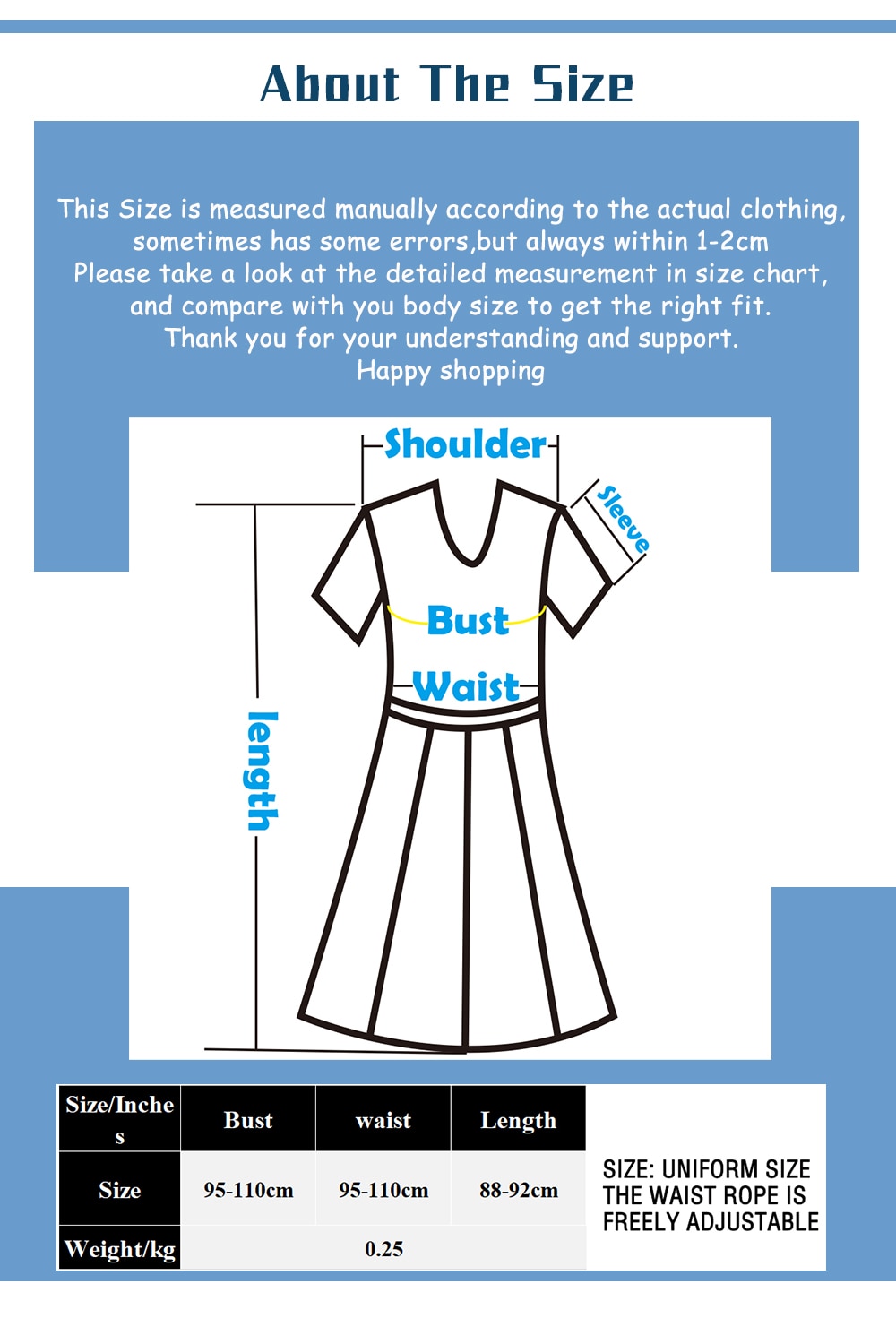 Le tour de poitrine est de 95-110cm; La taille est de 95-110cm, et la longueur de la jupe est de 88-92cm