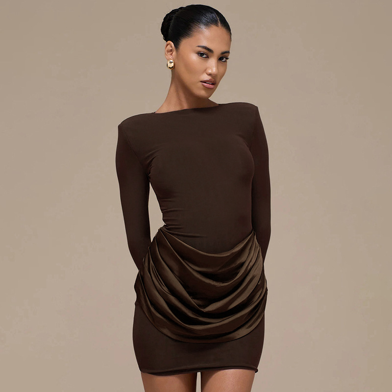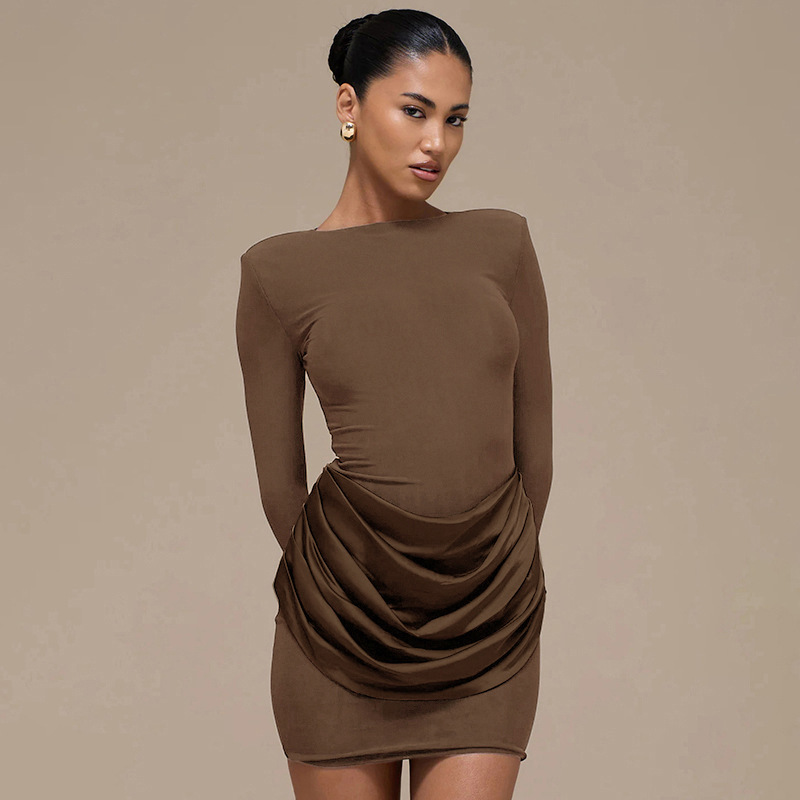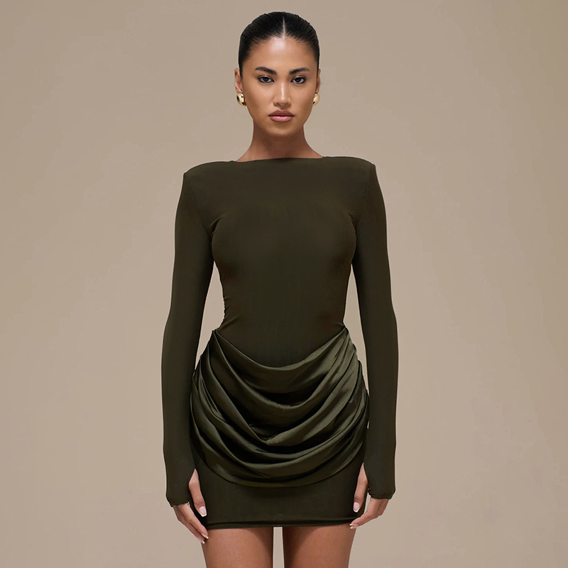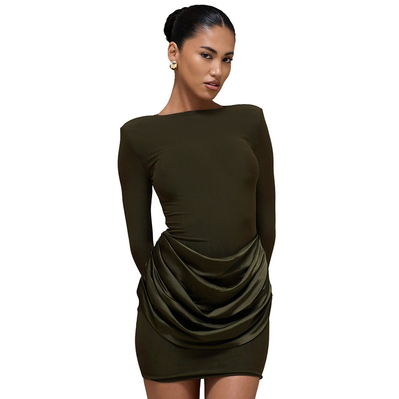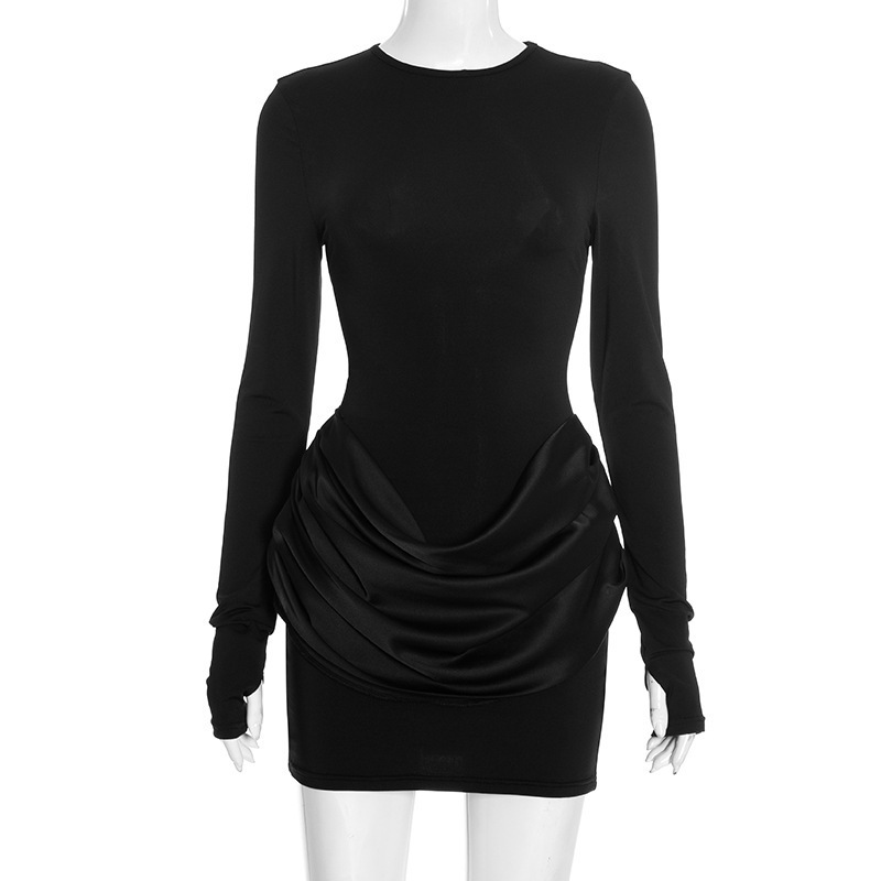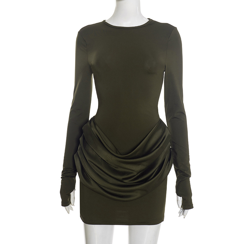 • Casual Slim-fit Crew-neck Long-sleeve Ruched Mini Dress