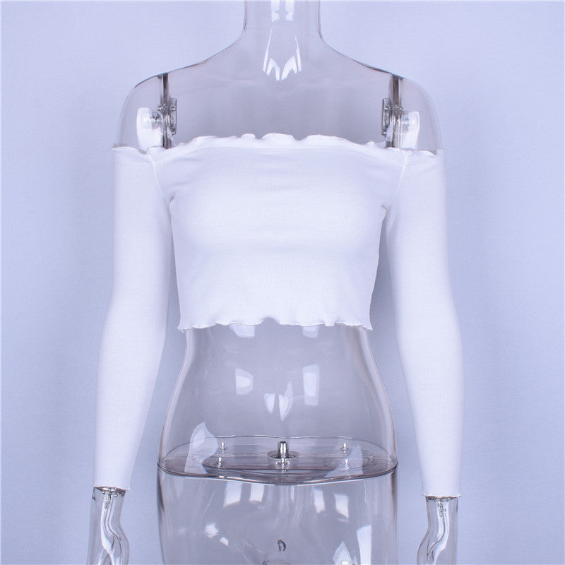 • Crop Top Women Autumn Off Shoulder Black Red Crochet Tank