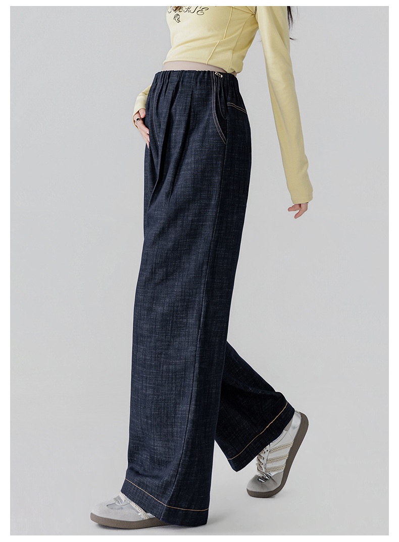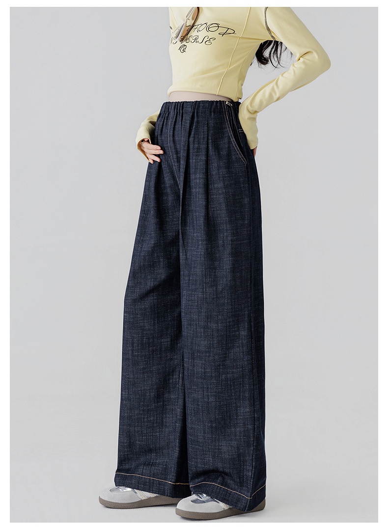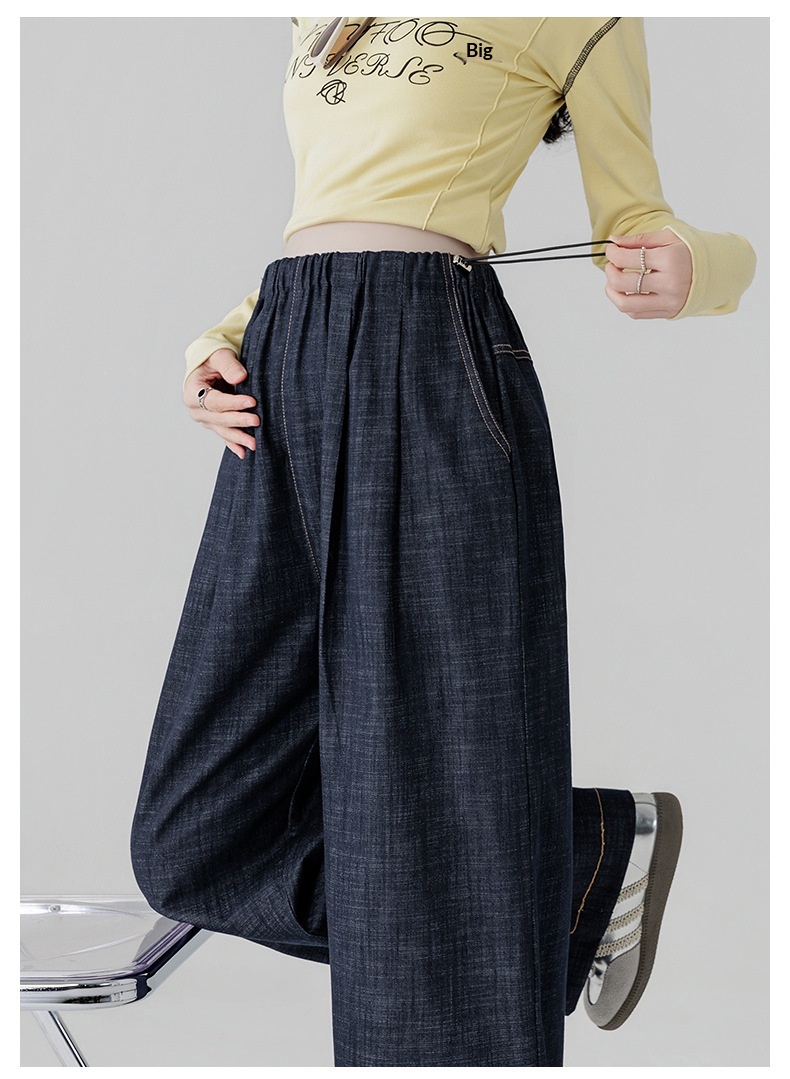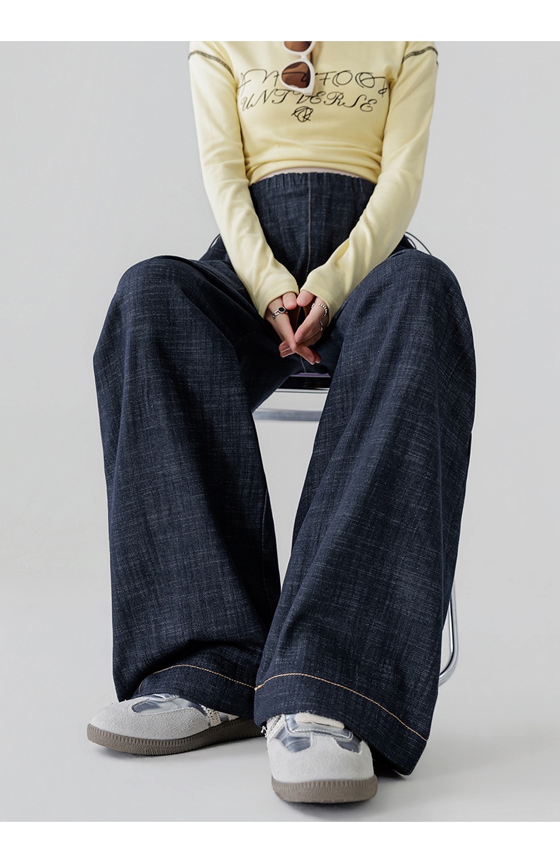 Dark Blue Fade-Resistant Wide-Leg Rayon Straight-Leg Maternity Jeans
