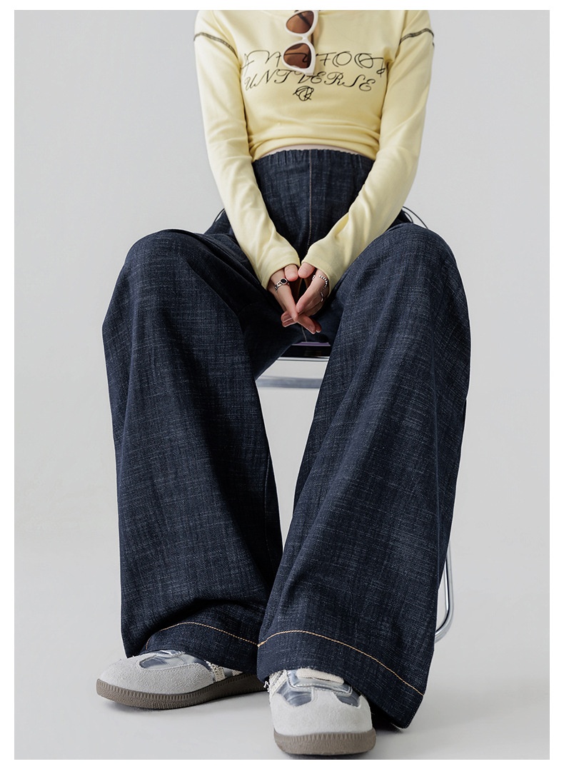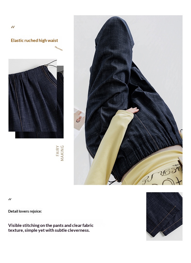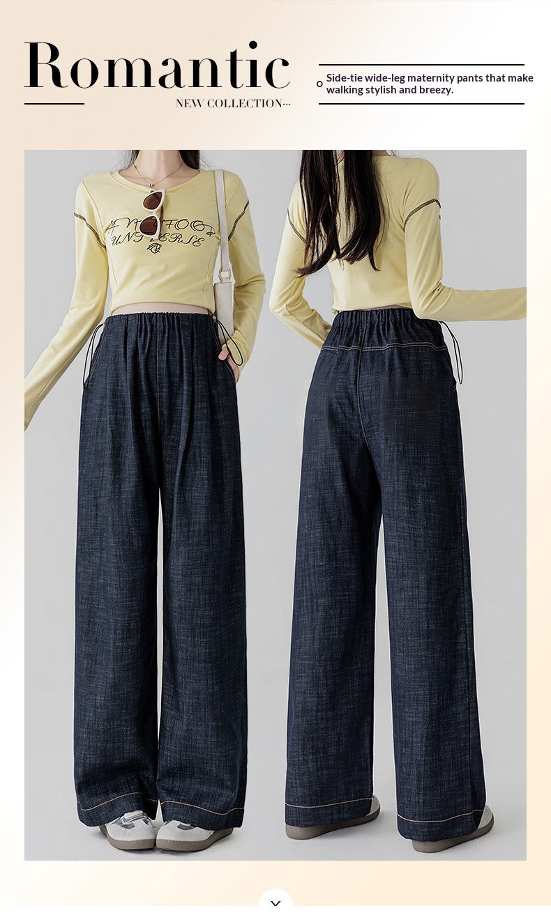 • Dark Blue Fade-Resistant Wide-Leg Rayon Straight-Leg Maternity Jeans