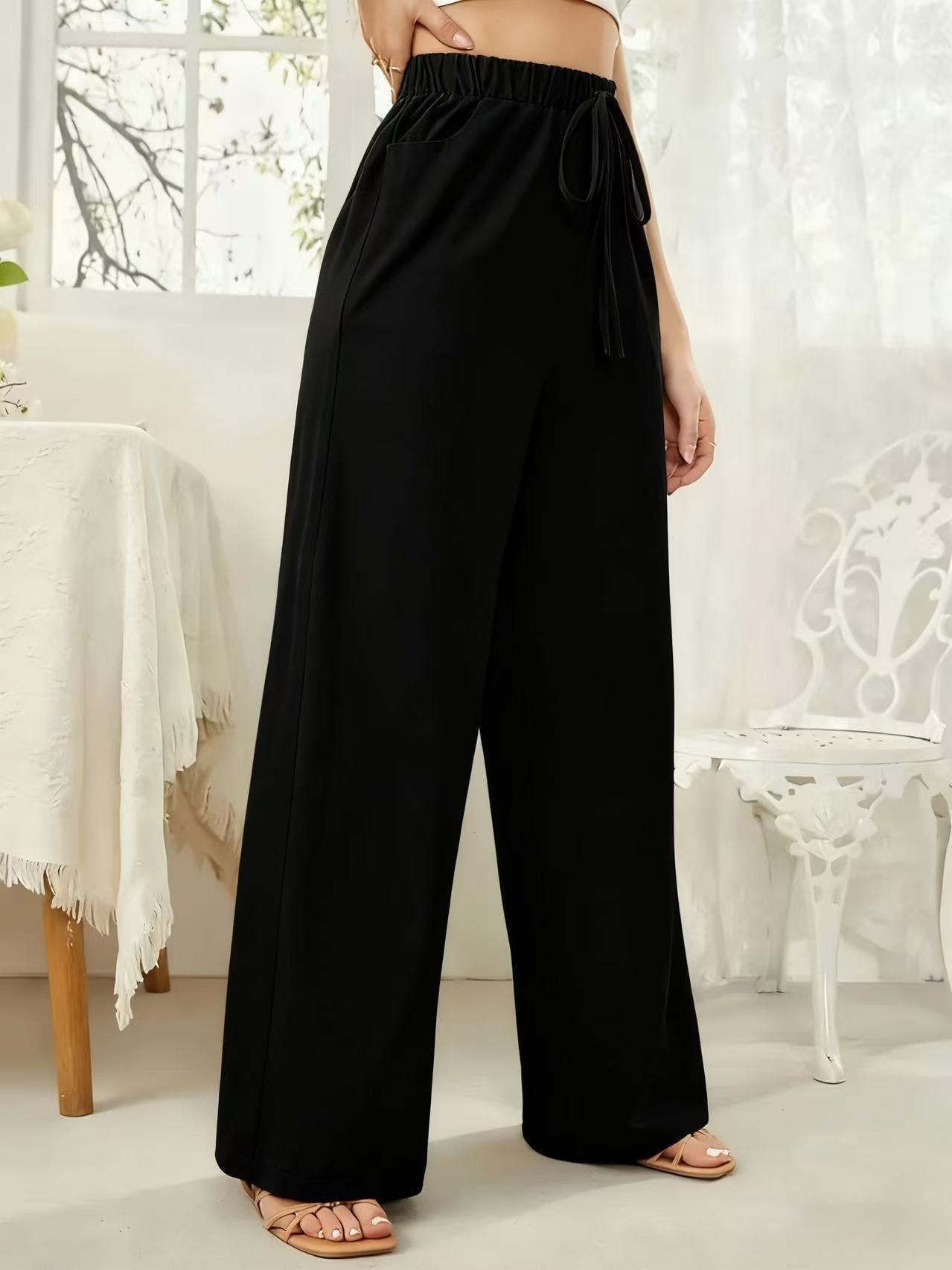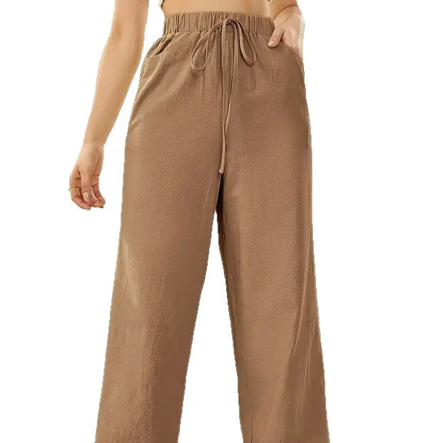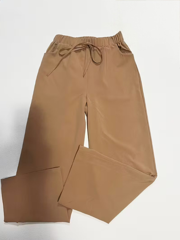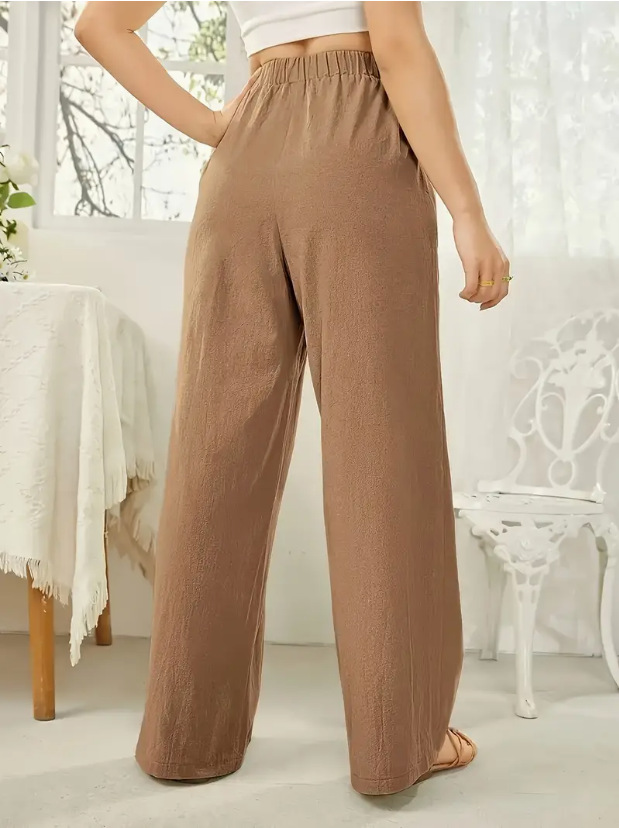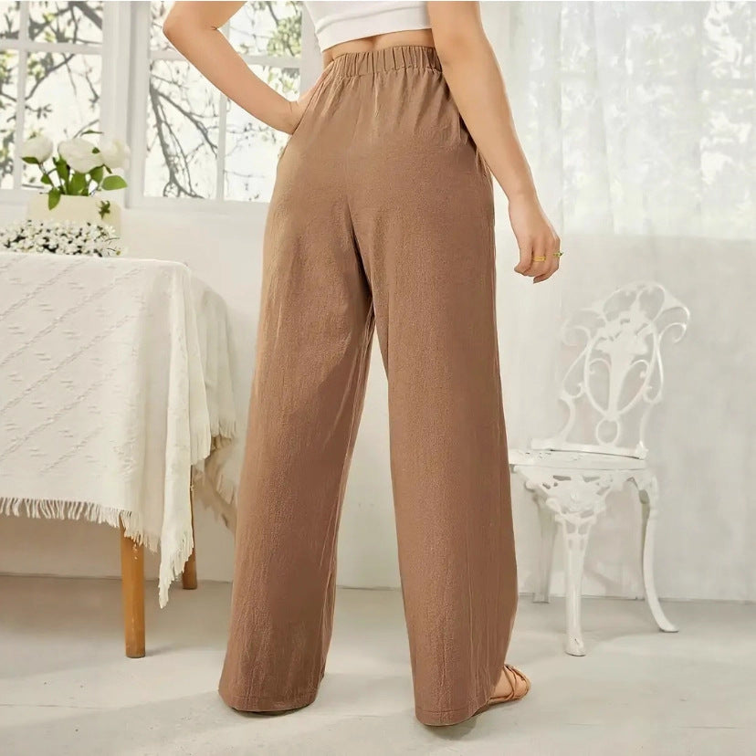 Elastic-waist Casual Solid-color Trousers