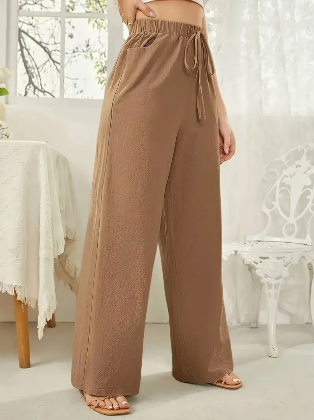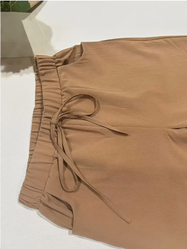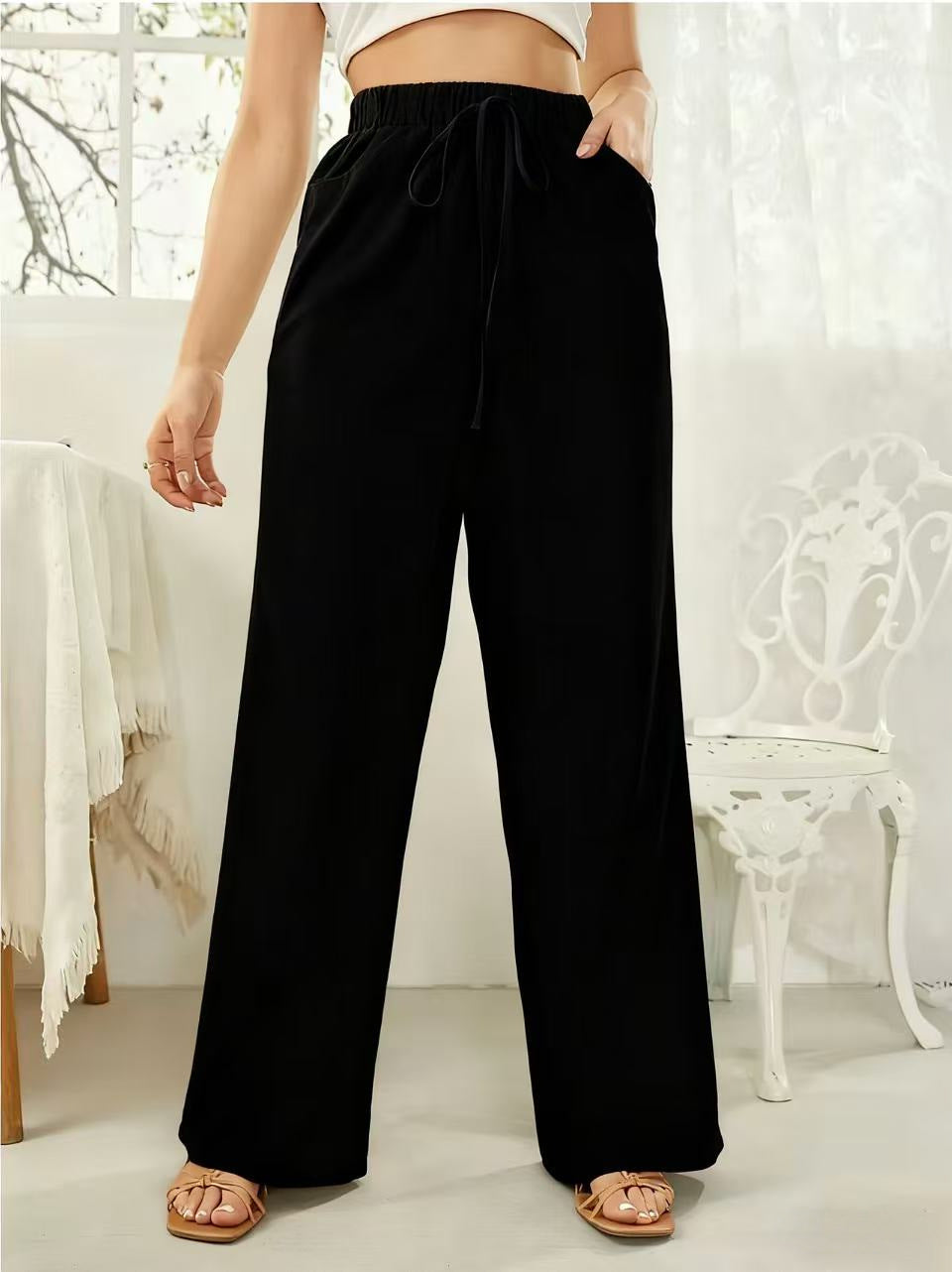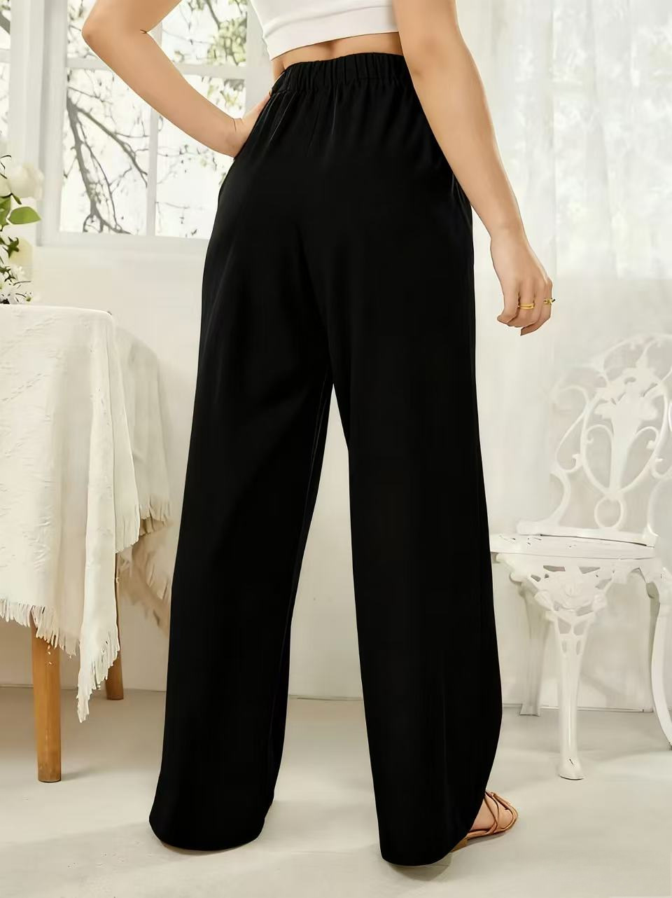Elastic-waist Casual Solid-color Trousers