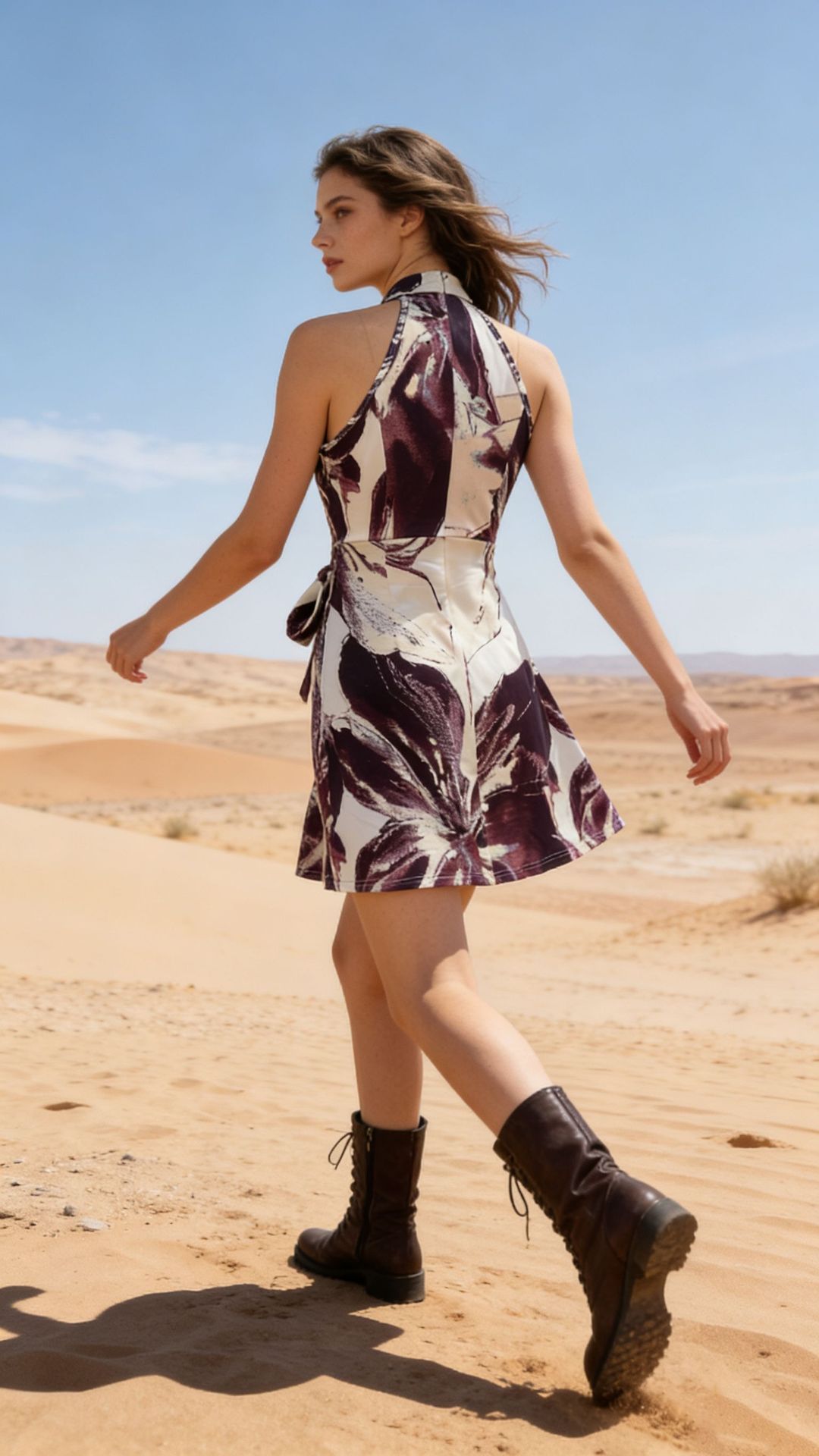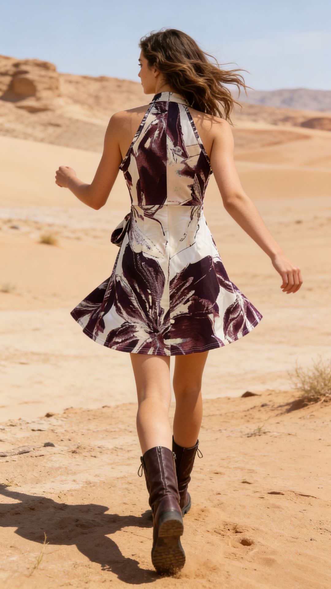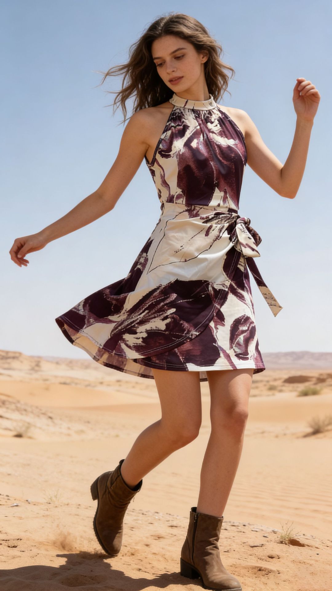• European And American-style Lace-up Polka-dot Pleated Dress