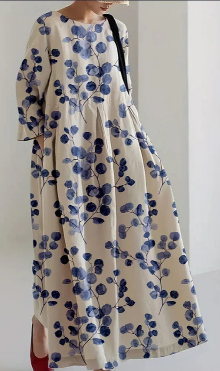 • European And American-style Loose-fitting Round-neck Printed Dress