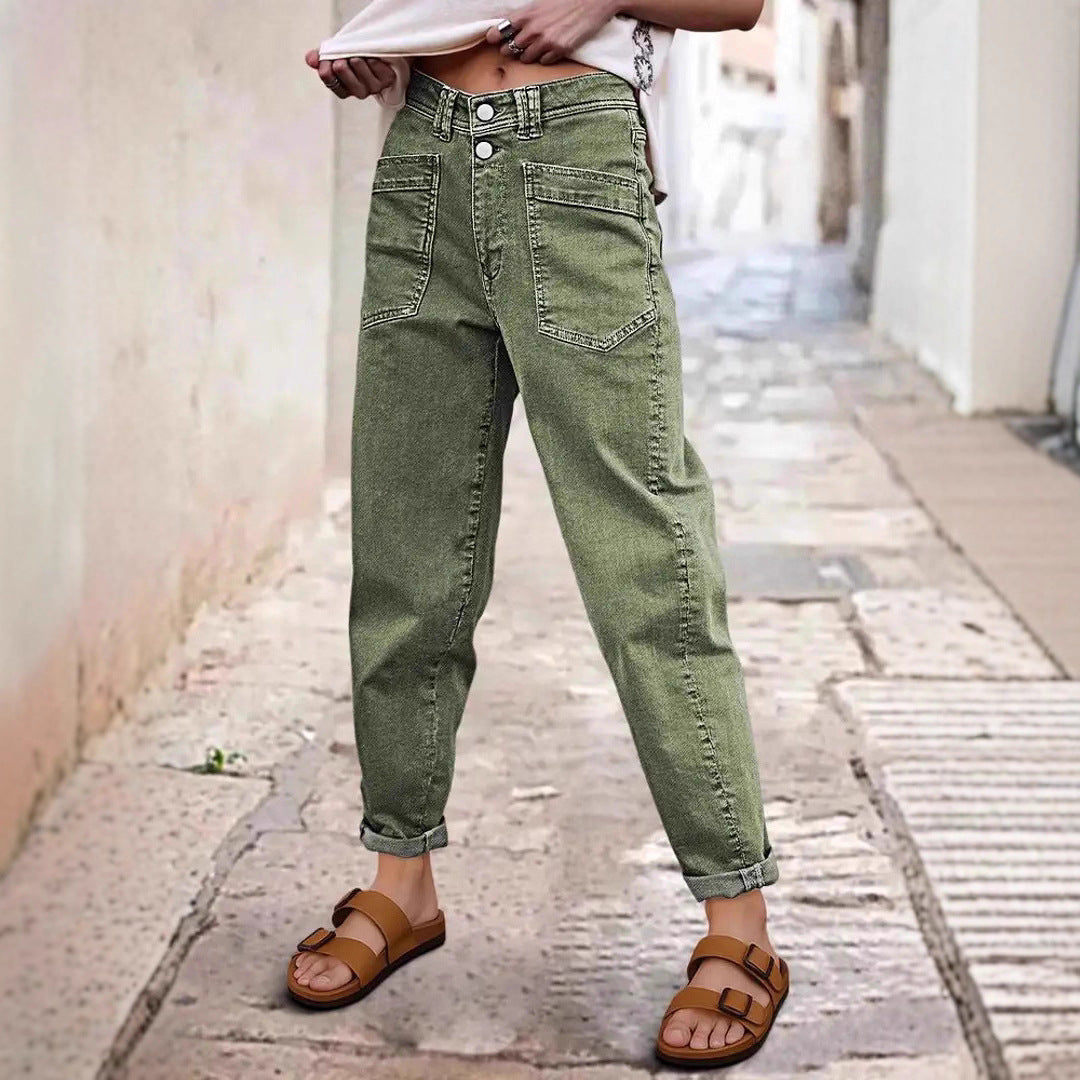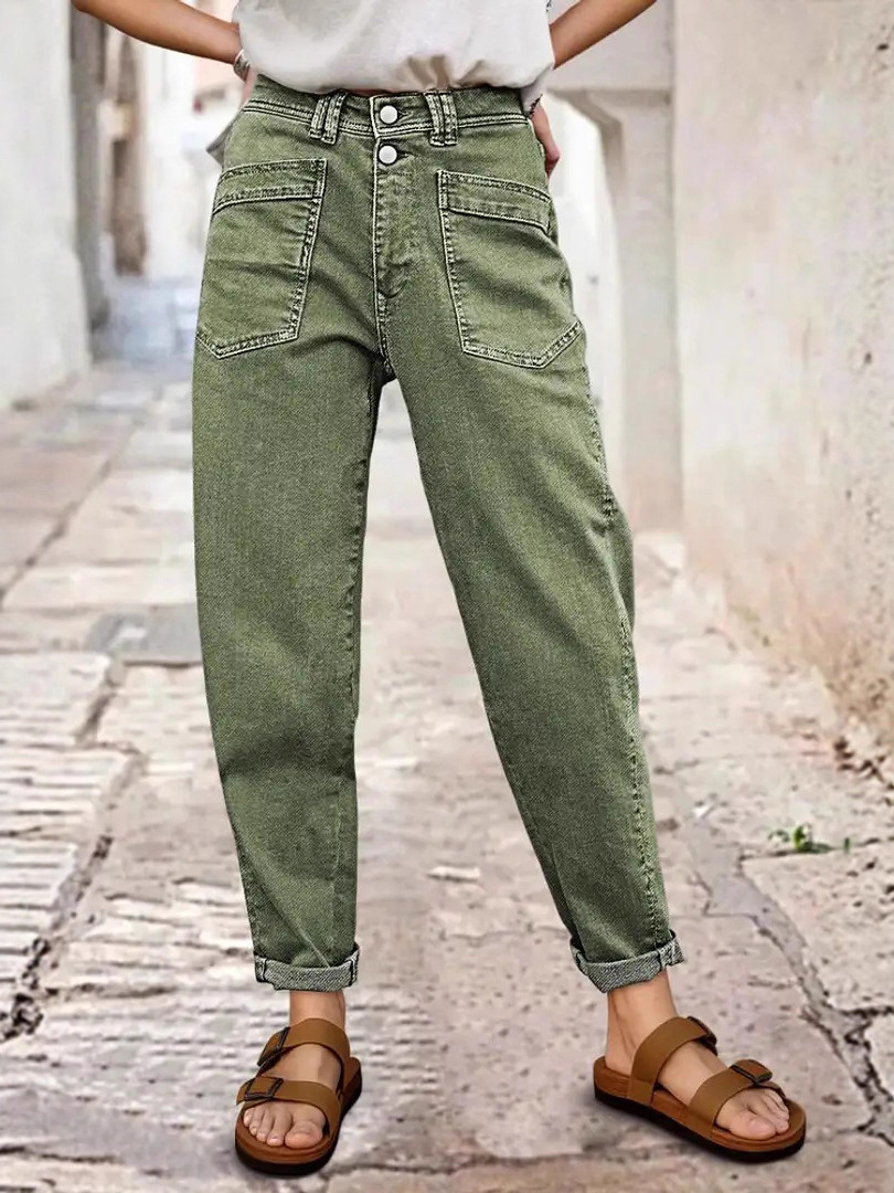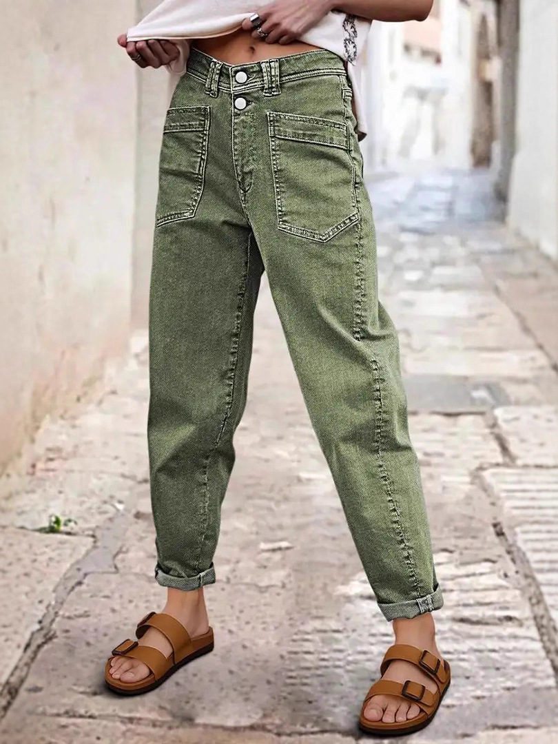 European And American-style Stretch Mid-rise Straight-leg Jeans