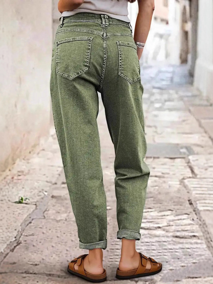 • European And American-style Stretch Mid-rise Straight-leg Jeans