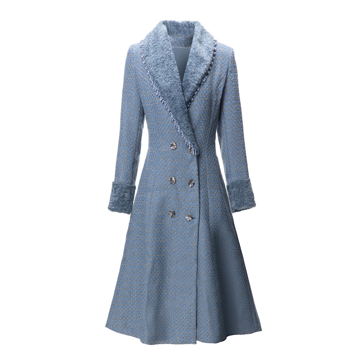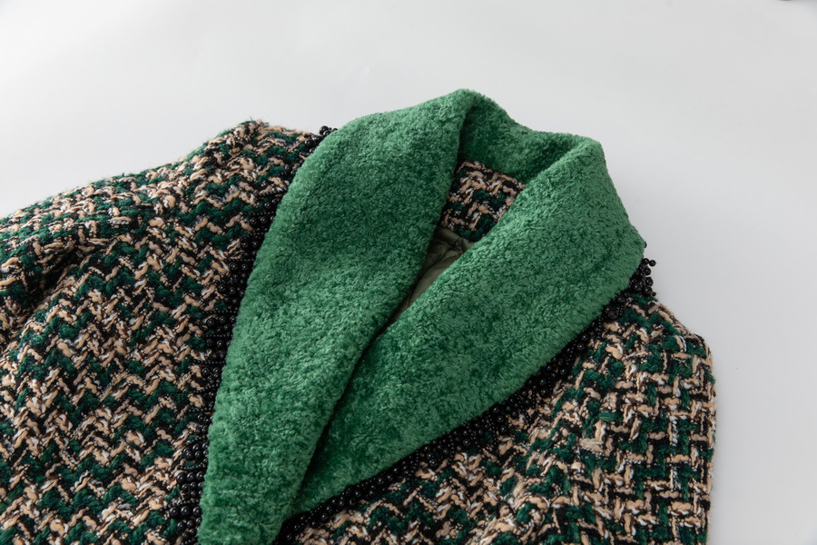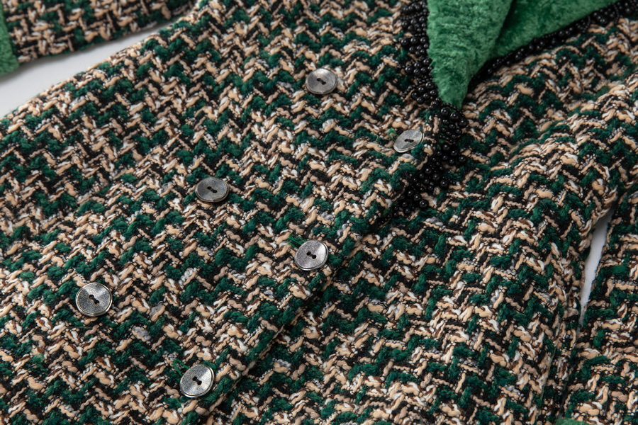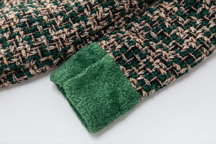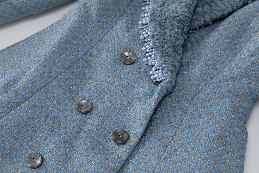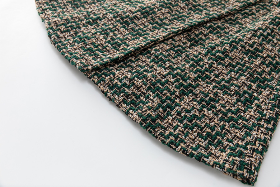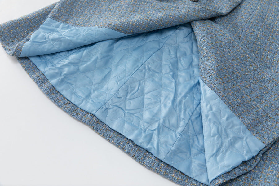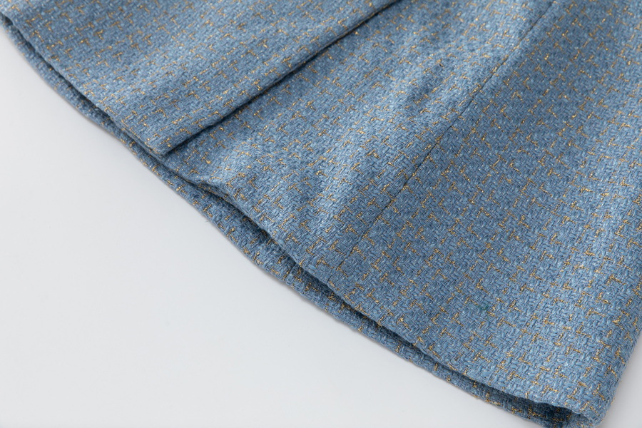 Color: sky blue gold thread carded woollen fabric, green woven soft tweed