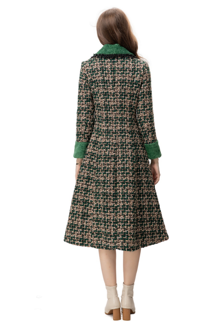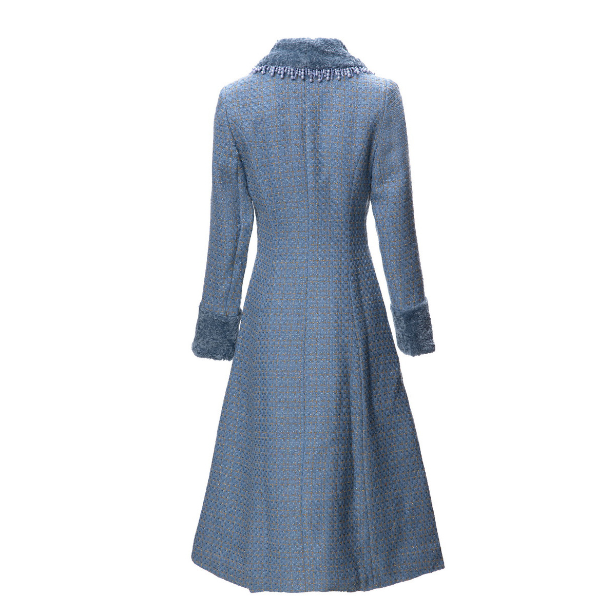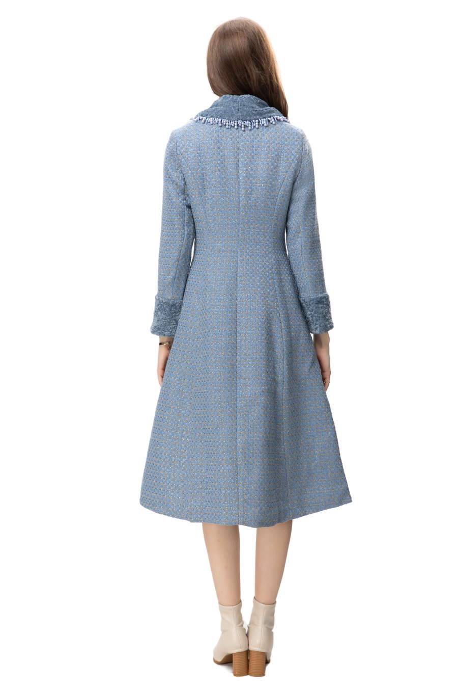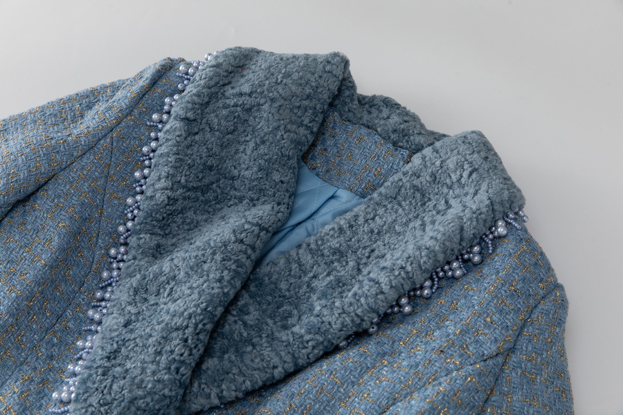 Color: sky blue gold thread carded woollen fabric, green woven soft tweed