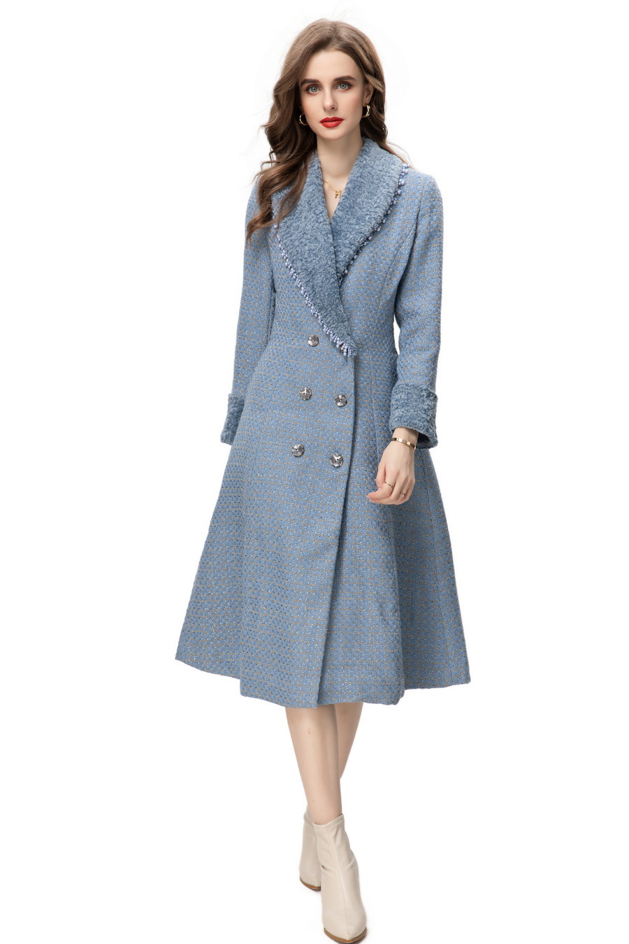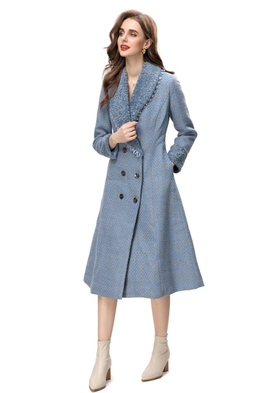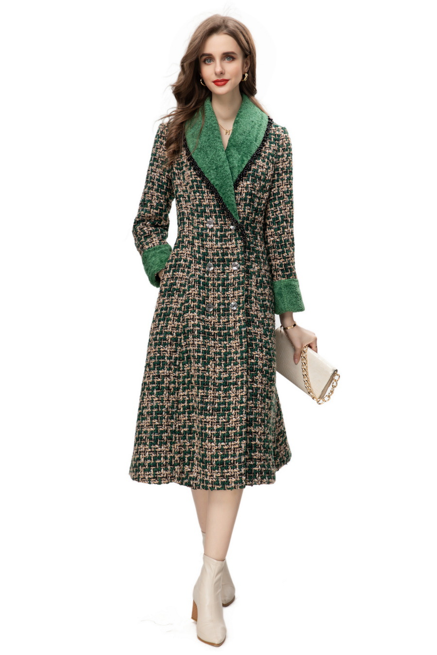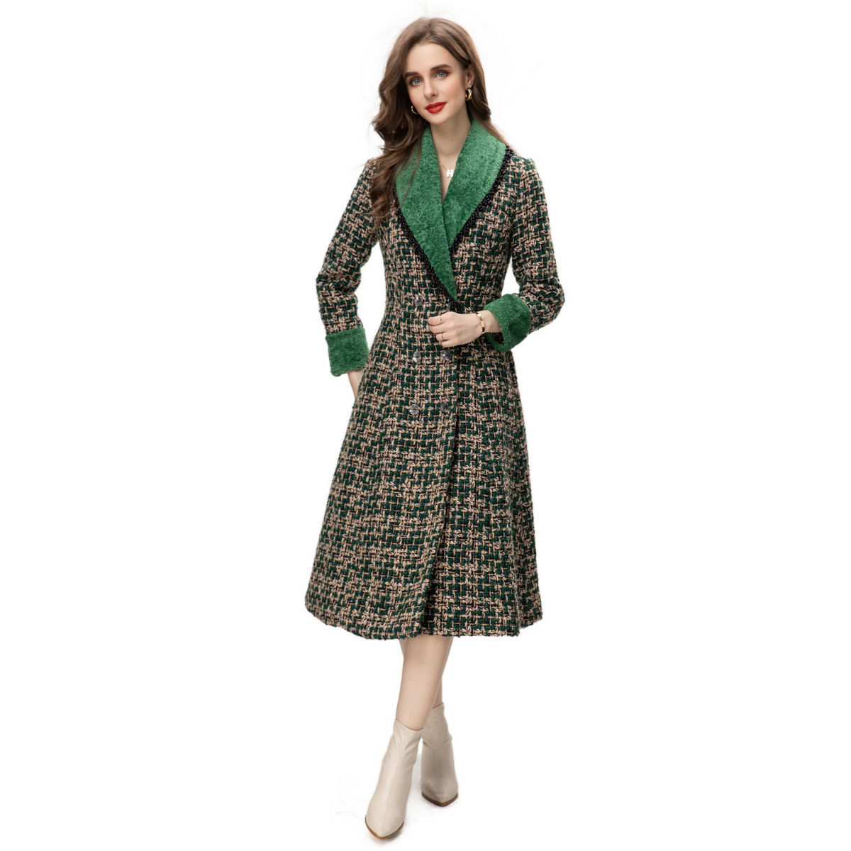 Color: sky blue gold thread carded woollen fabric, green woven soft tweed