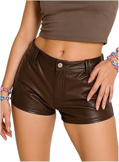 Faux Leather Micro Shorts For Women's Sexy Shorts