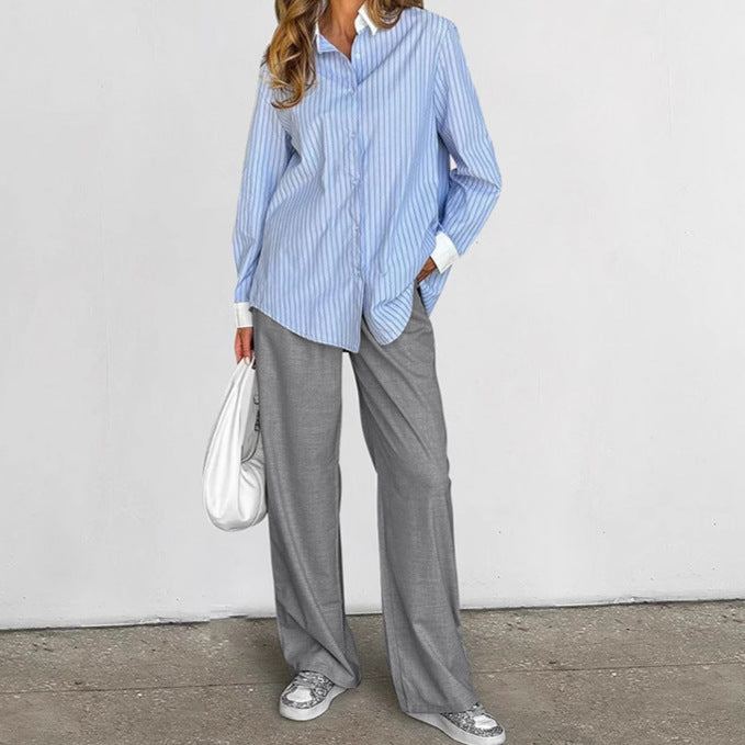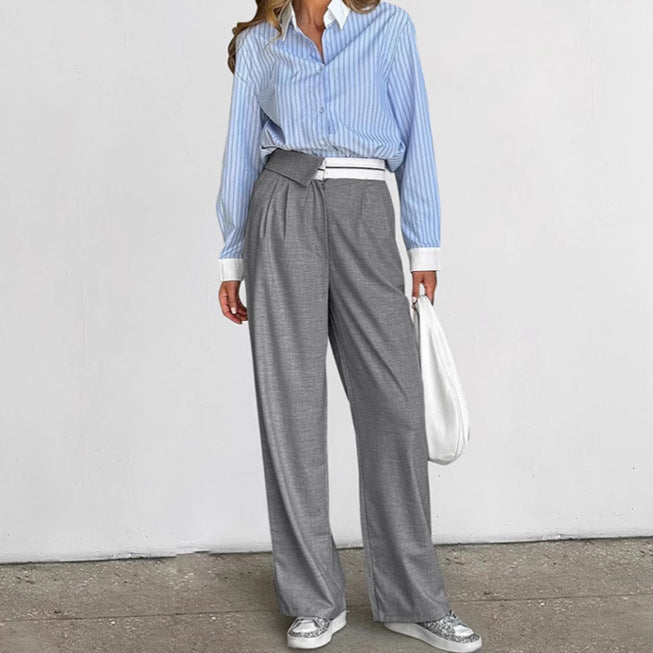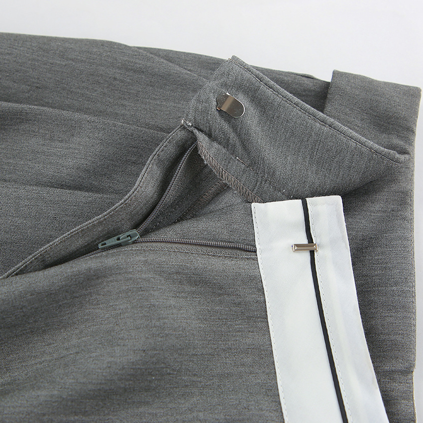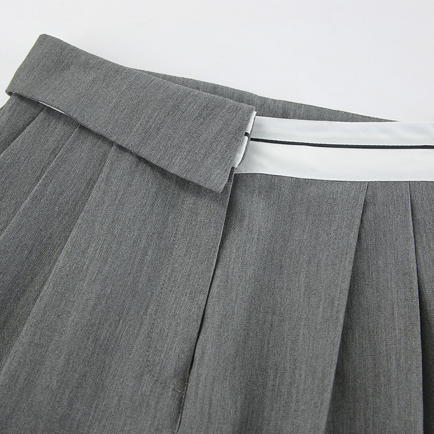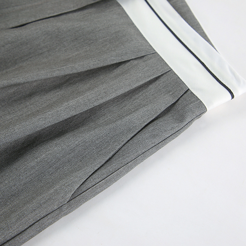 Gray Loose Straight Patchwork High Waist Trousers