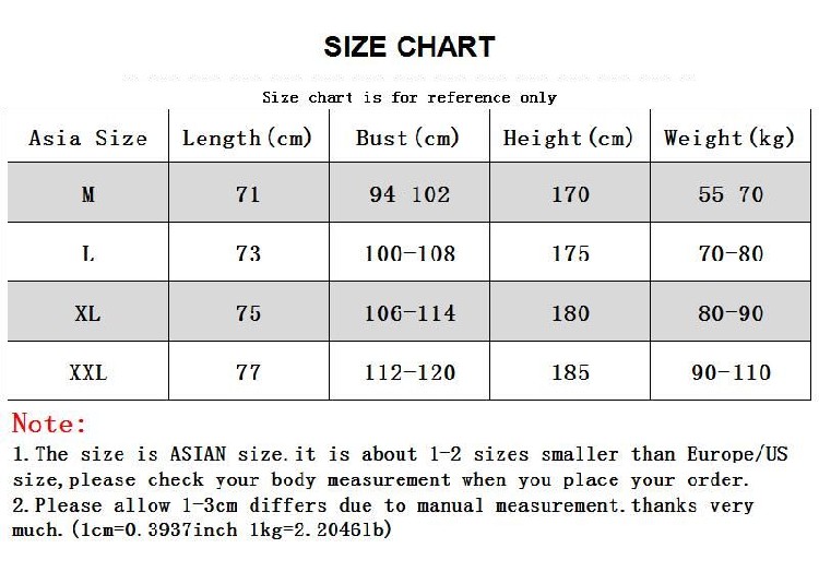 1. Asian sizes are 1 to 2 sizes smaller than European and American people. Choose the larger size if your size between two sizes. Please allow 2-3cm differences due to manual measurement.
