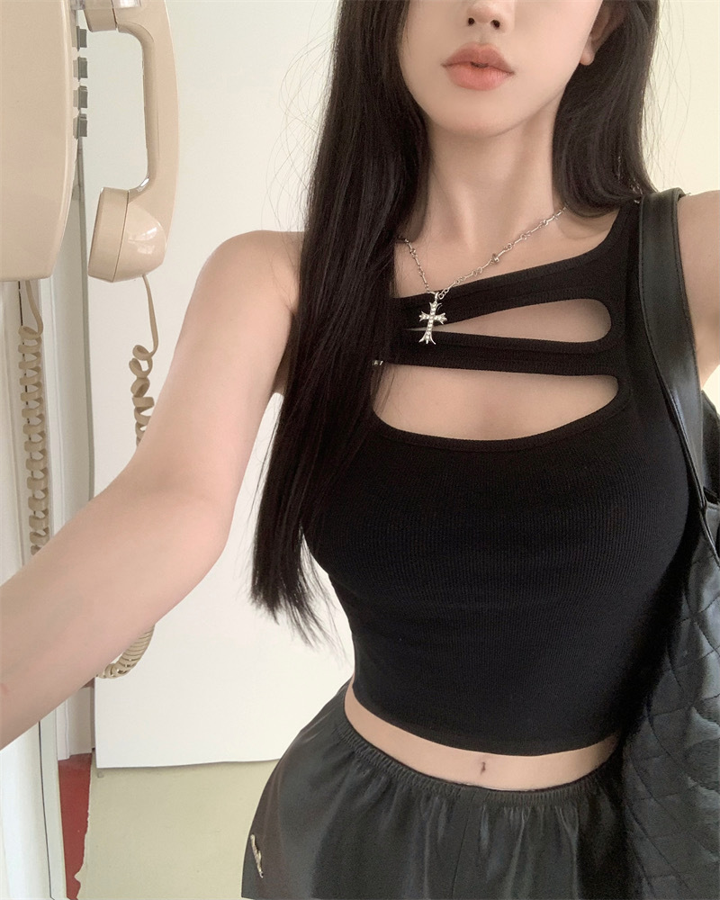 Hollowed Out White Small Suspender Tank Top For Women