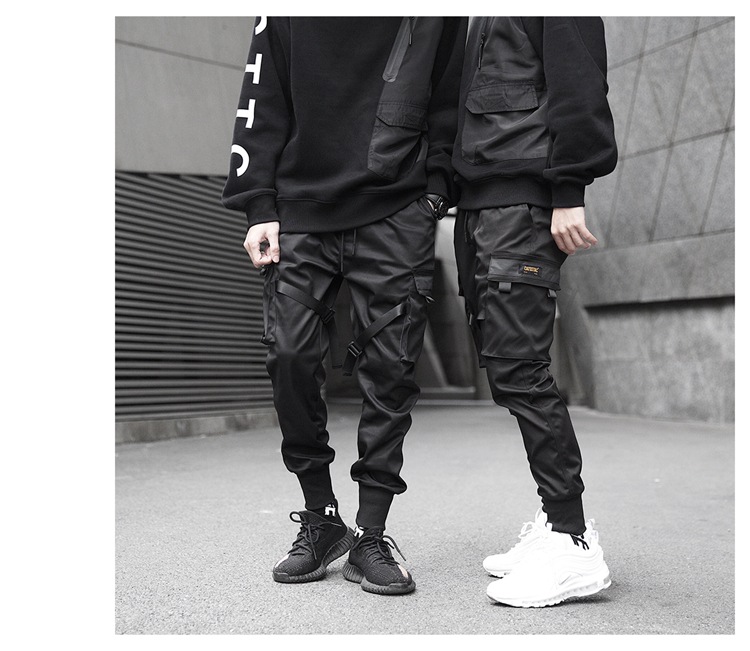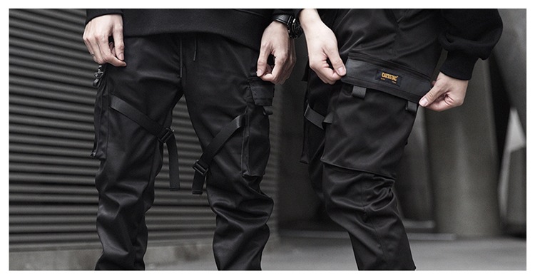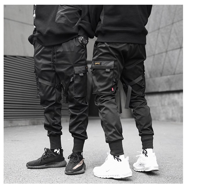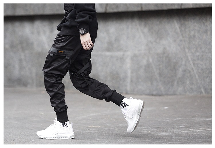 • Hot Sale Men Black Hip Hop Cargo Pants Elastic Waist Jogger Trousers Sweatpants Pockets Full Length Casual Fashion