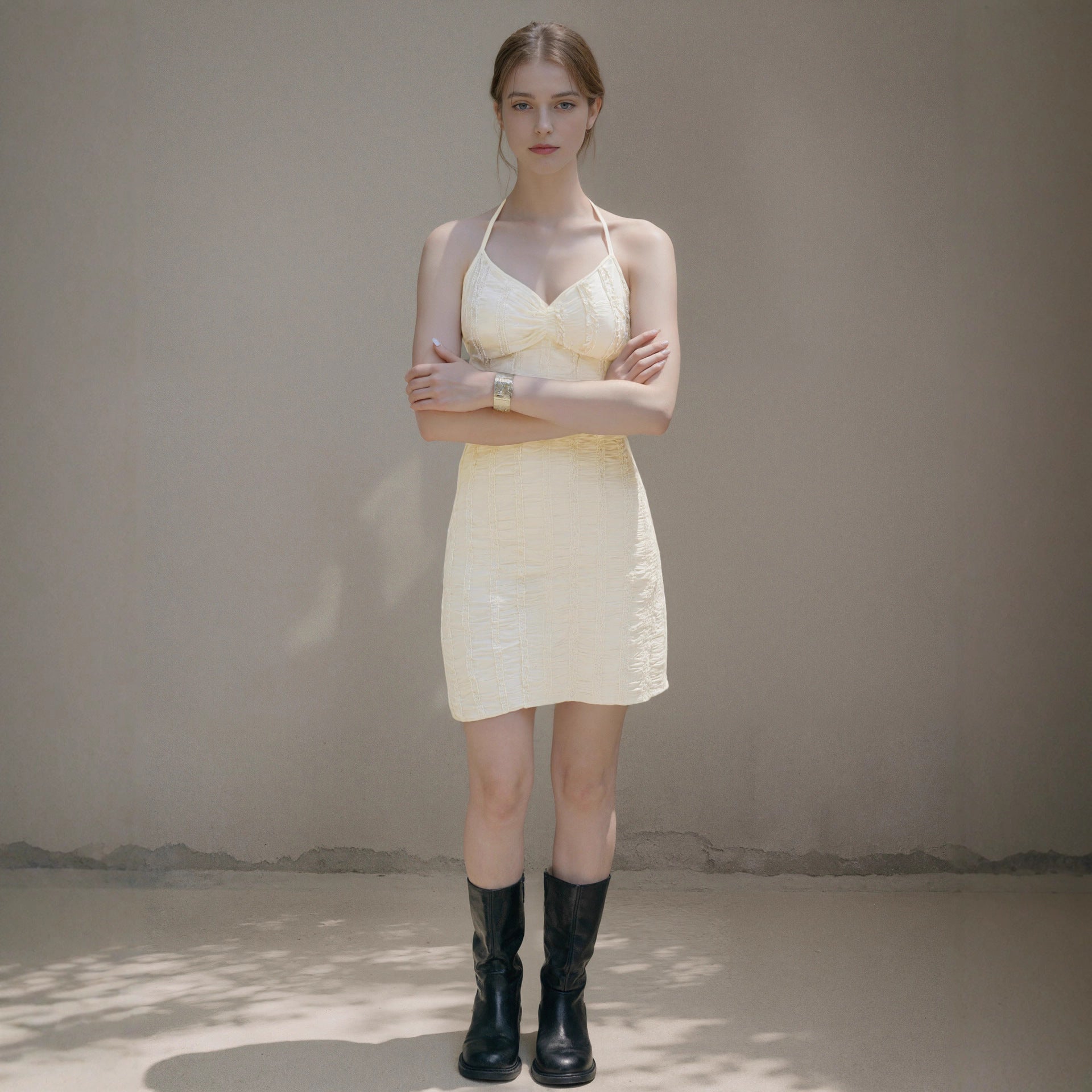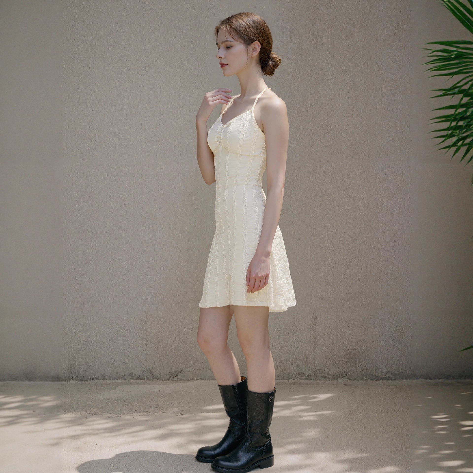 Knitted Jacquard Lace-up V-Neck Sleeveless Mini Dress