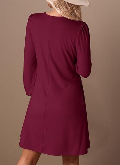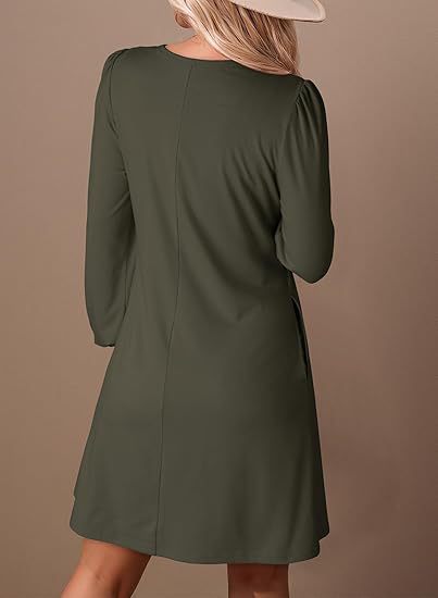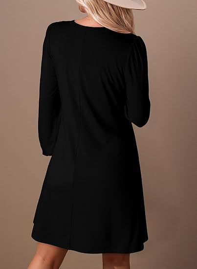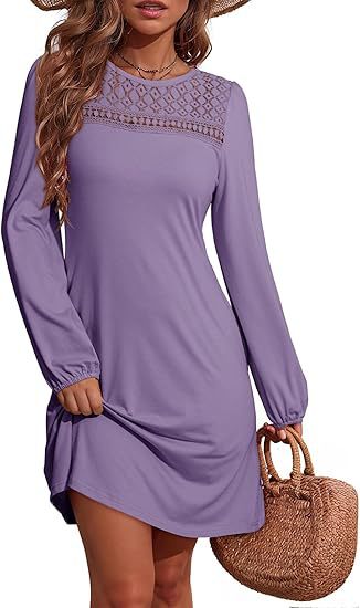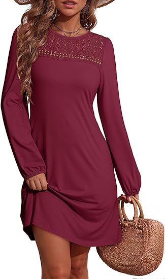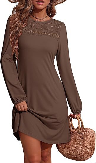 Long-sleeve A-line Solid-color Lace Loose Dress