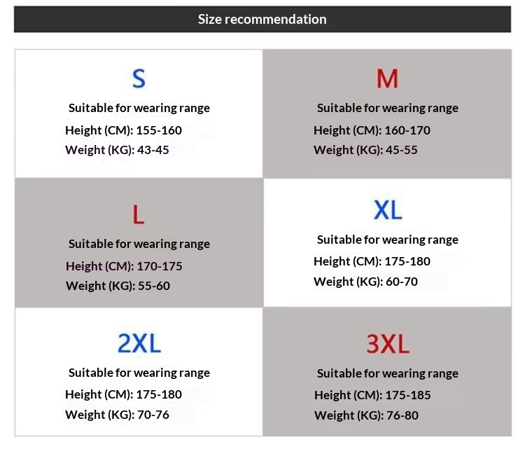 Sizes: M, L, XL, 2XL, 3XL, 4XL, 5XL