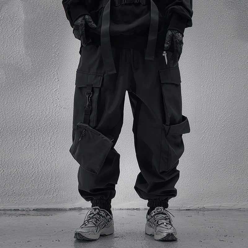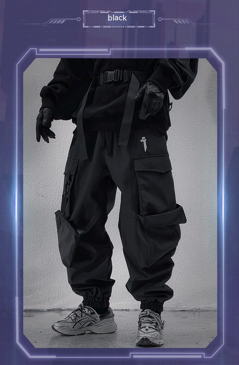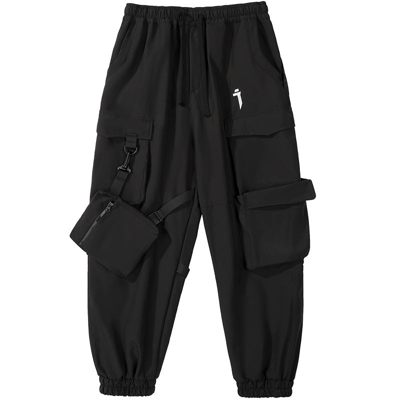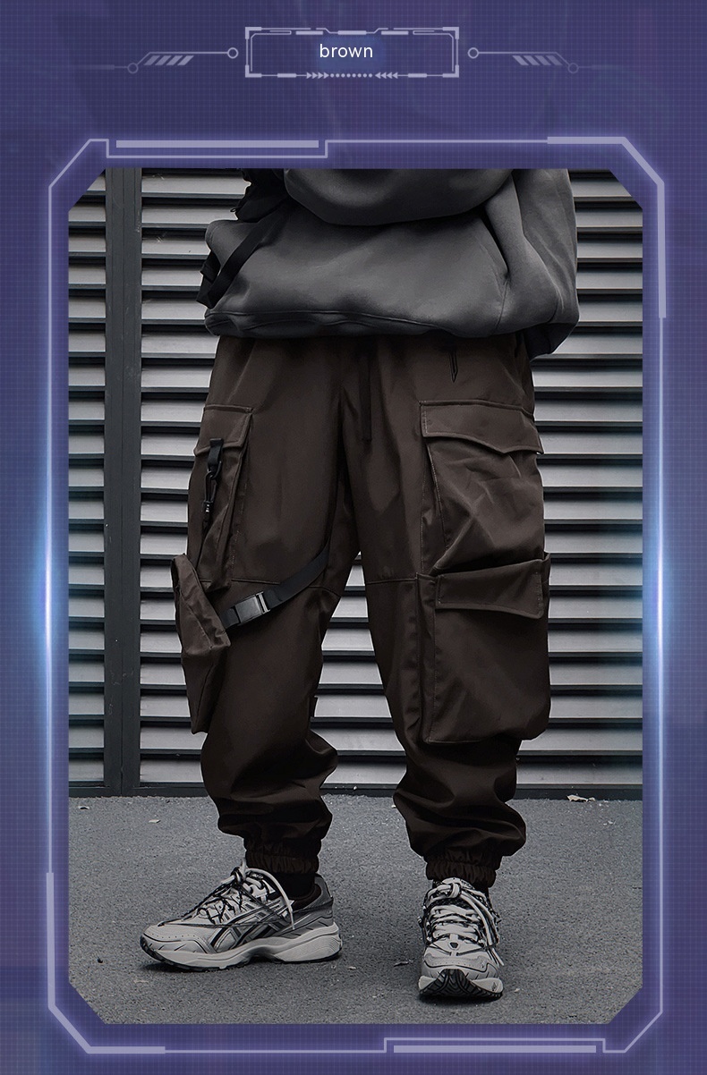 • Men's Loose Casual Pocket Trousers With Ribbon Cargo Jogger Pants