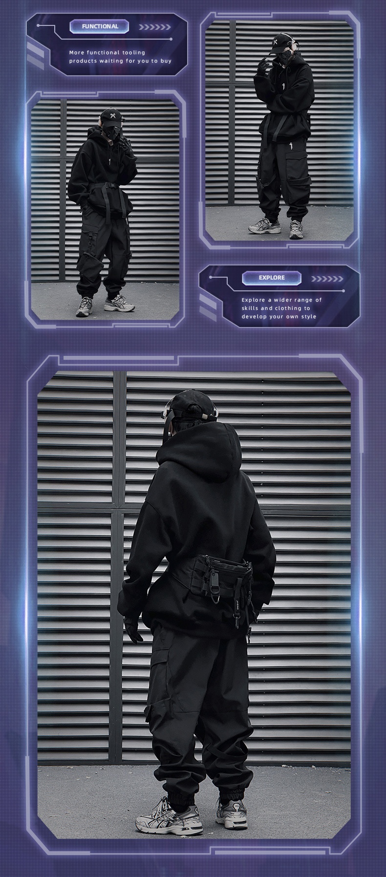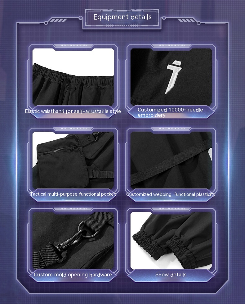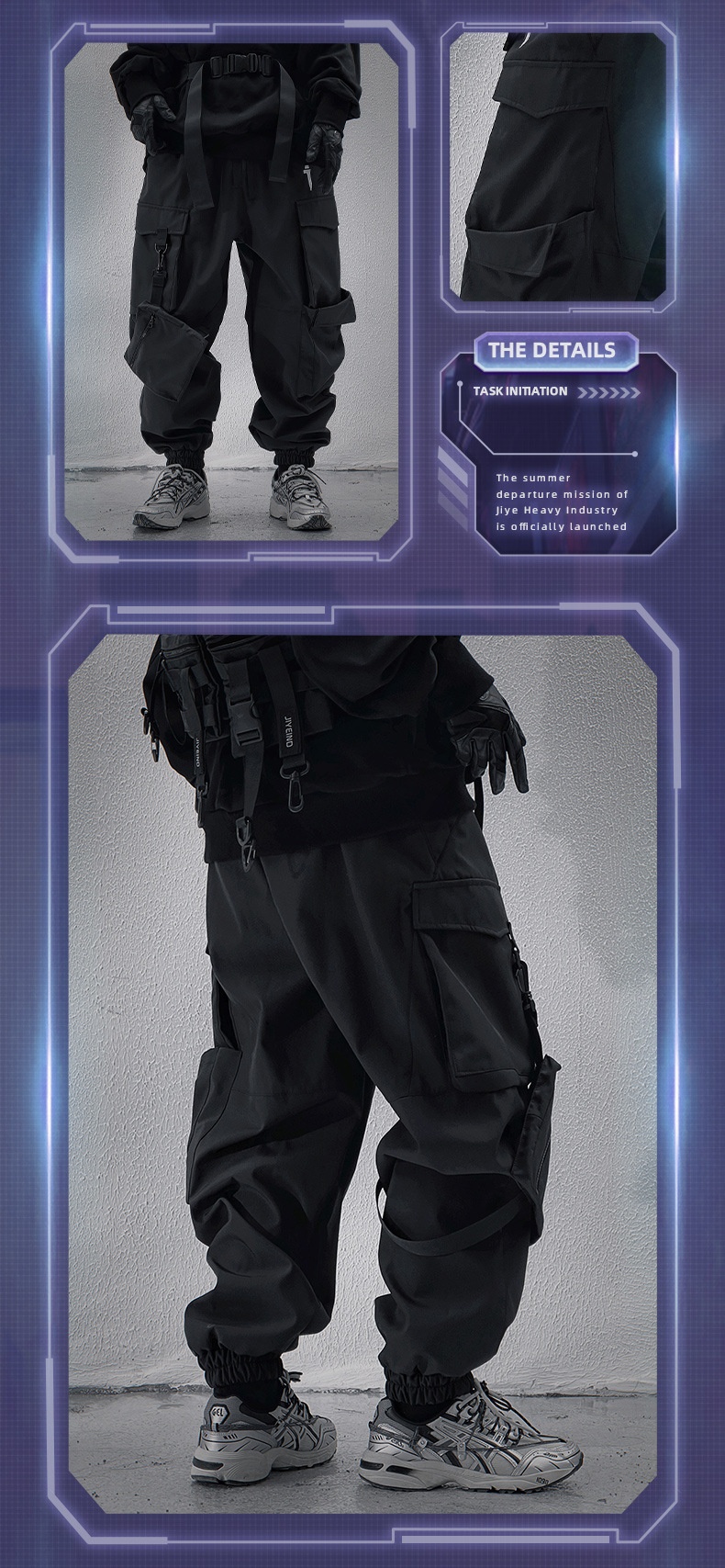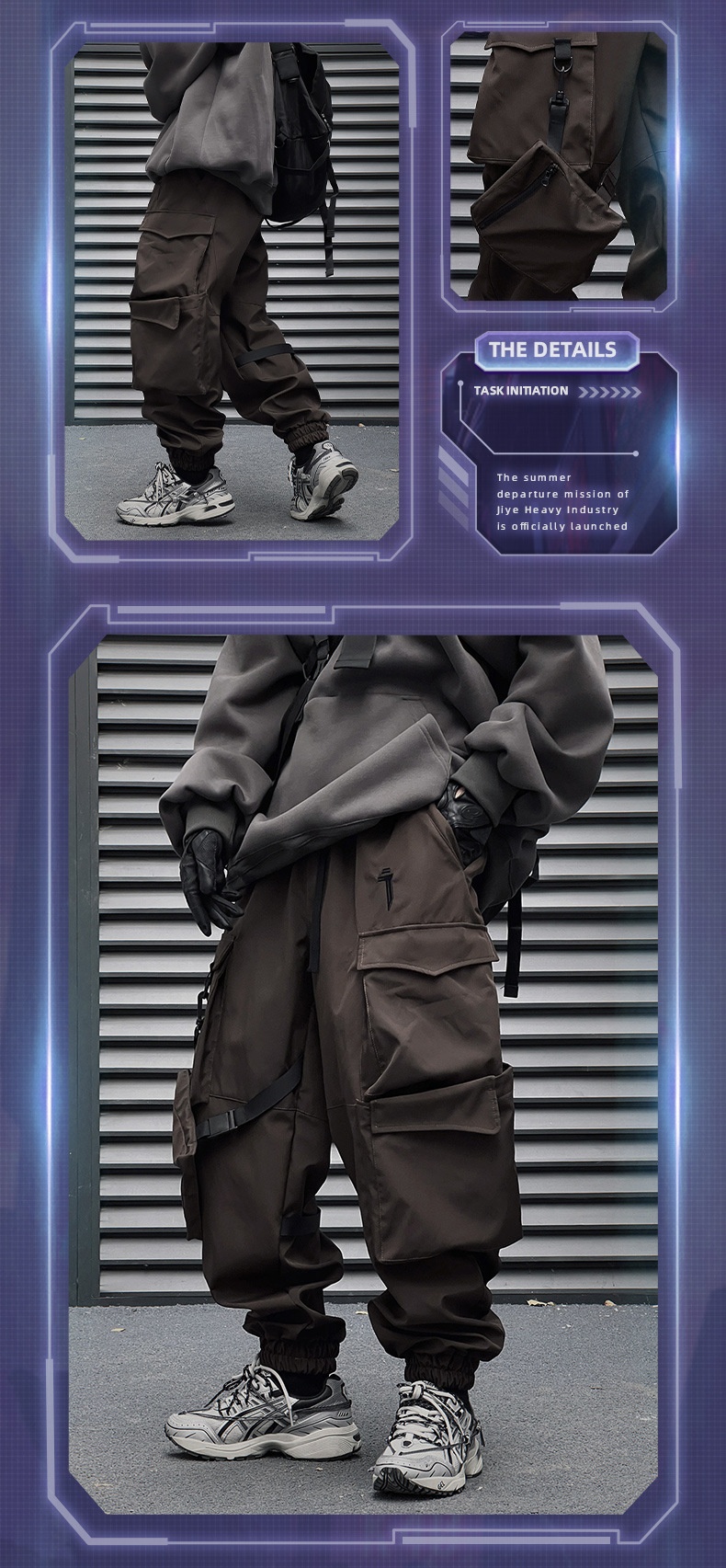 • Men's Loose Casual Pocket Trousers With Ribbon Cargo Jogger Pants