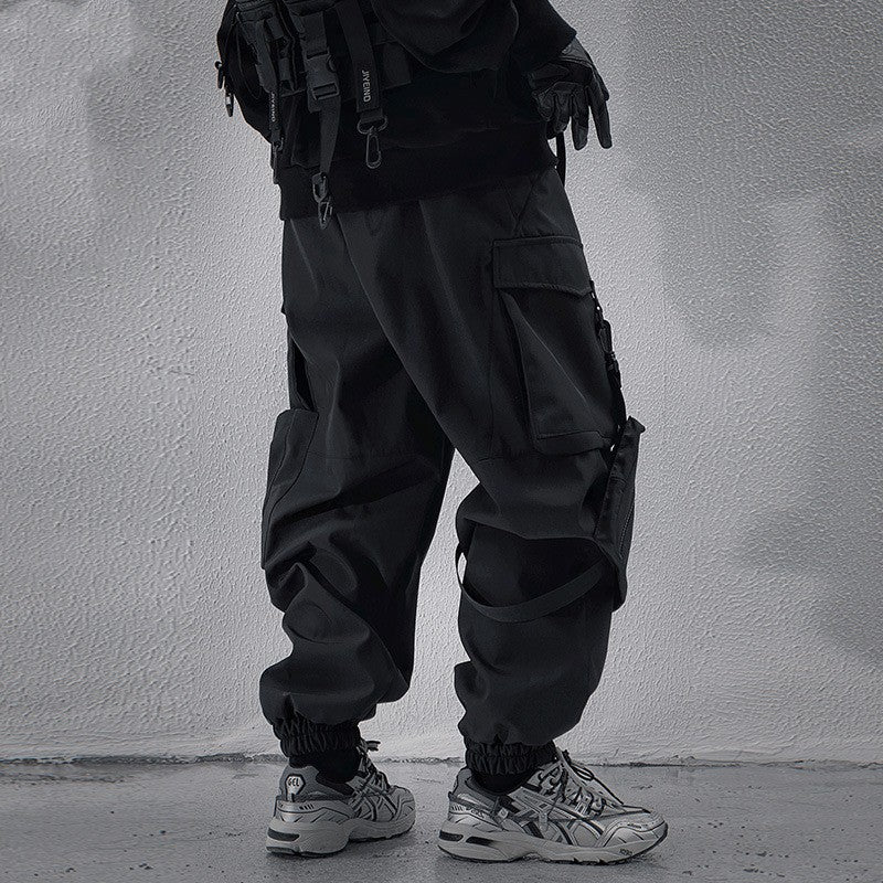 Men's Loose Casual Pocket Trousers With Ribbon Cargo Jogger Pants