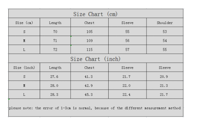 1. Asian sizes are 1 to 2 sizes smaller than European and American people. Choose the larger size if your size between two sizes. Please allow 2-3cm differences due to manual measurement.