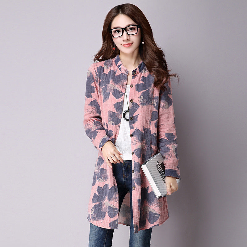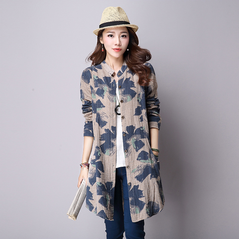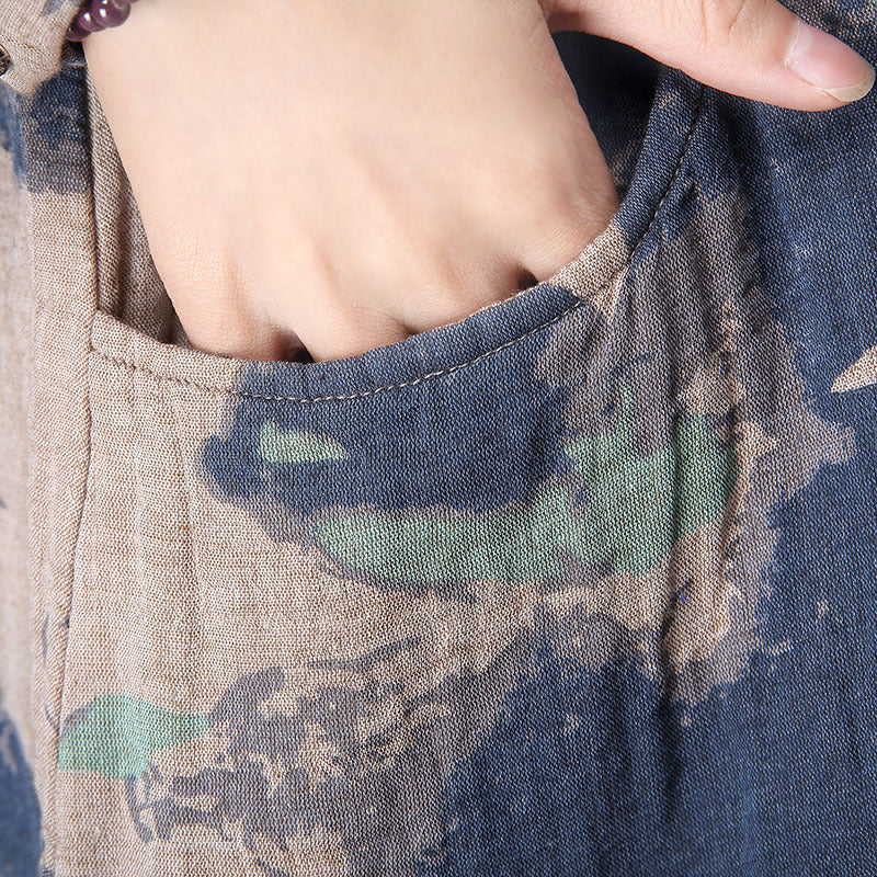 Printed cotton and linen long sleeve shirt