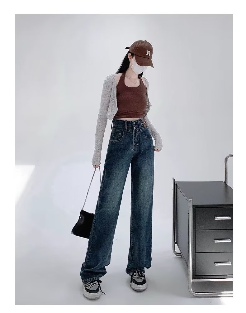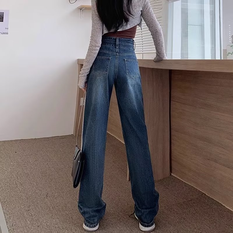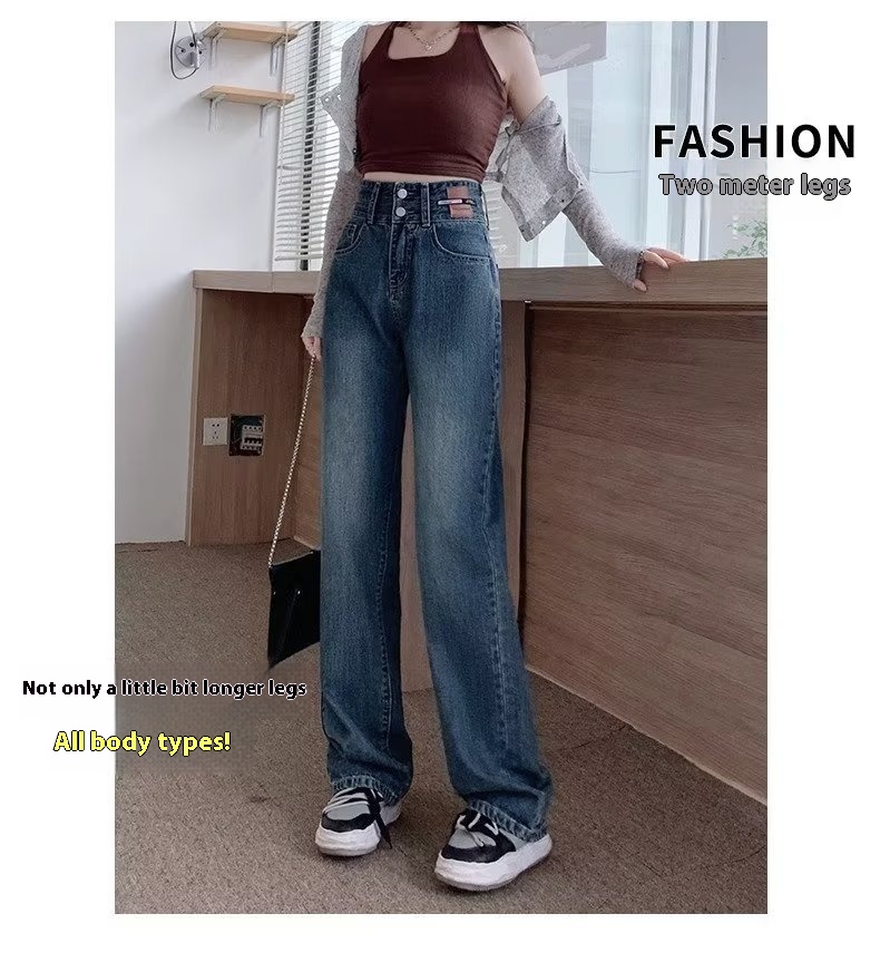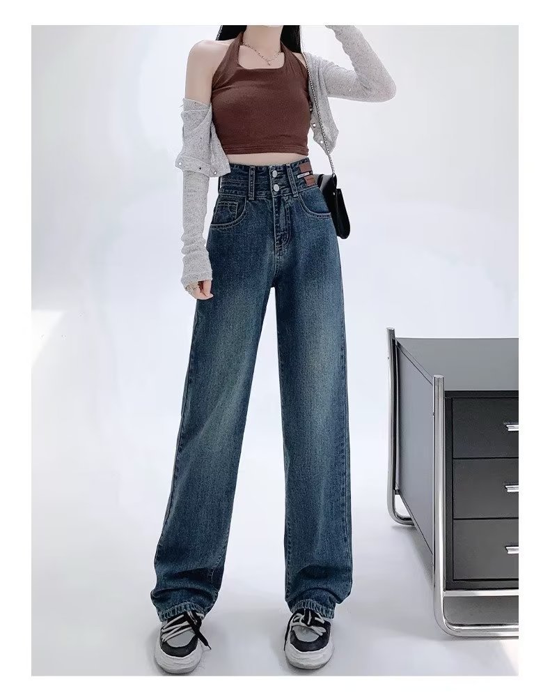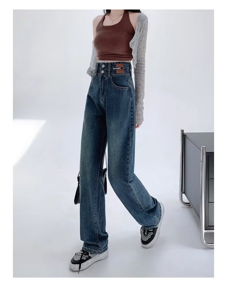 • Retro High Waist Jeans Women's Straight Plus Size Wide Leg Pants