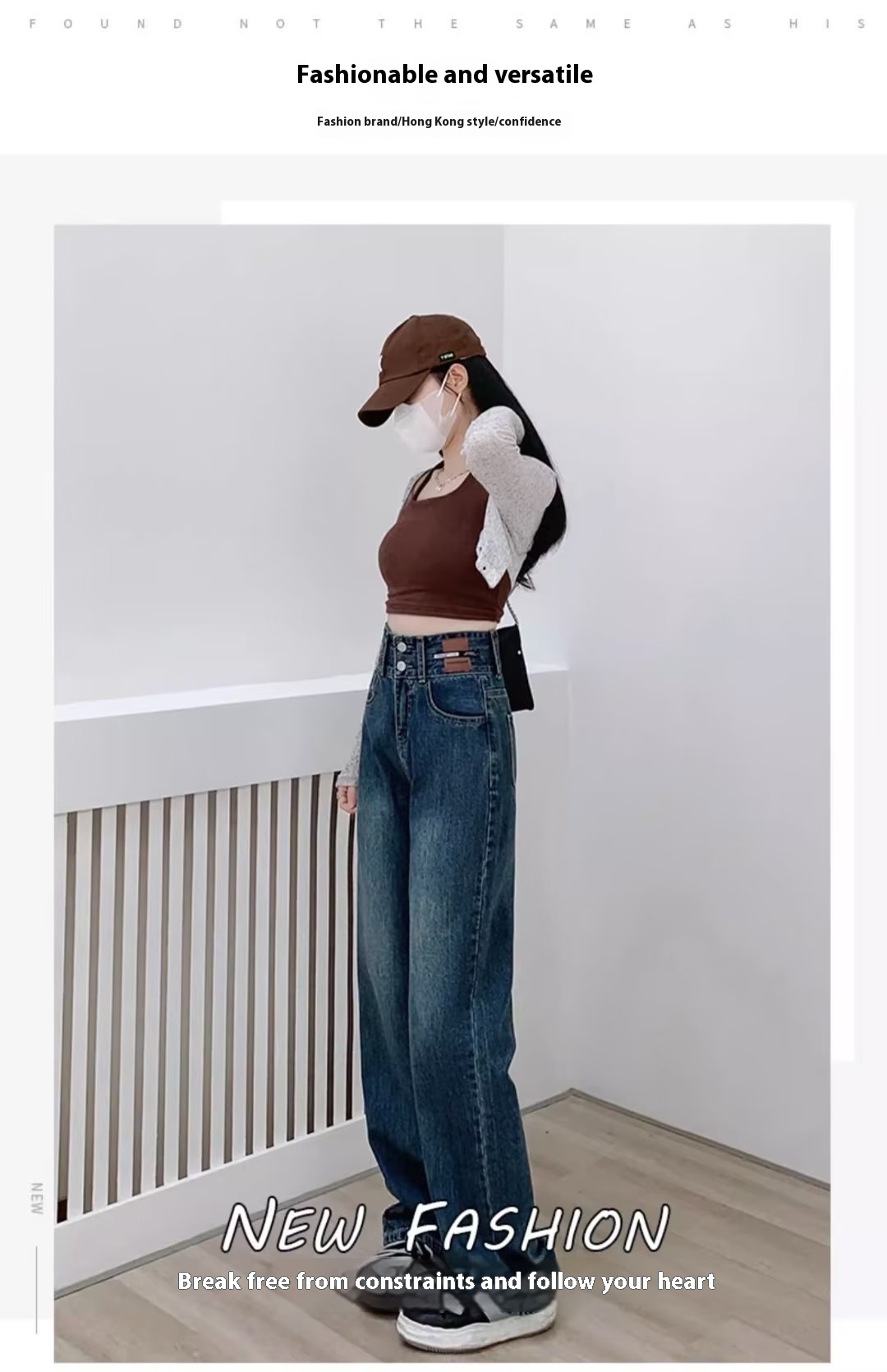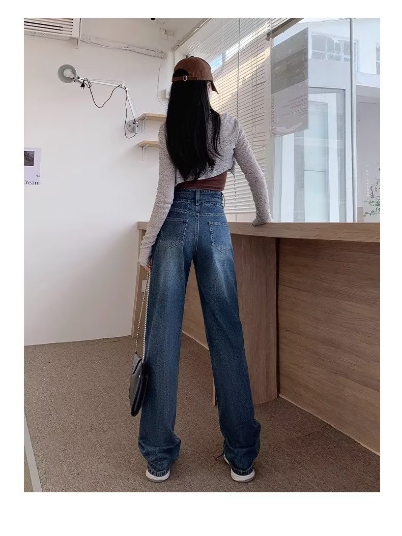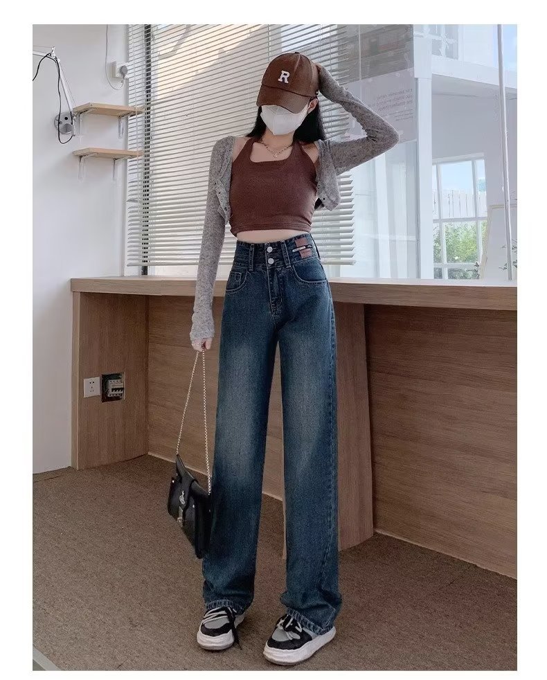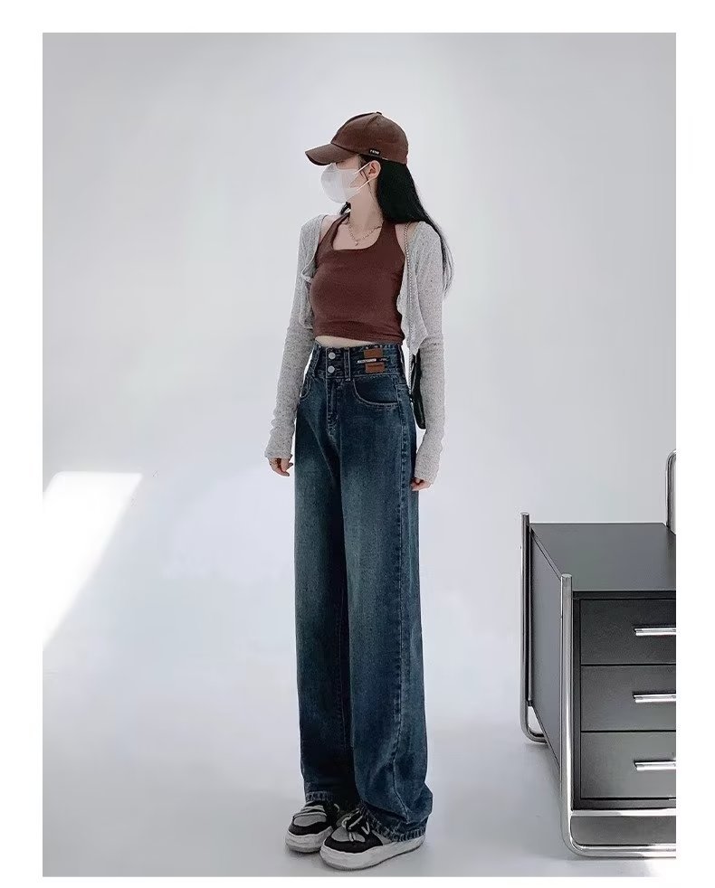 • Retro High Waist Jeans Women's Straight Plus Size Wide Leg Pants