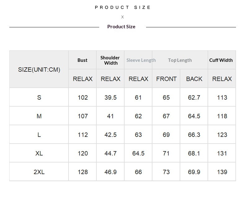 Sizes: S, M, L, XL, 2XL