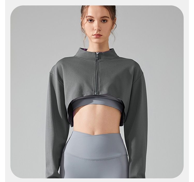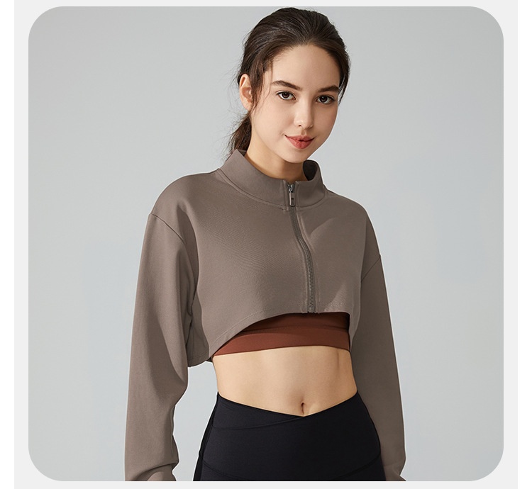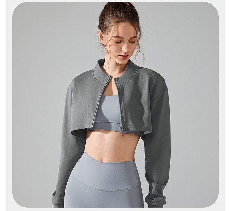 Short Navel Yoga Clothes Coat Long Sleeve Stand Collar