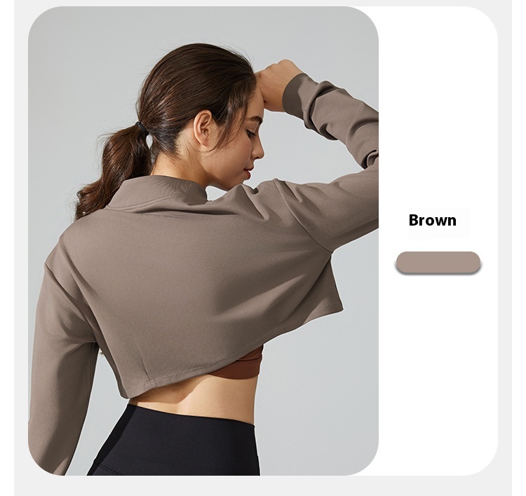 • Short Navel Yoga Clothes Coat Long Sleeve Stand Collar