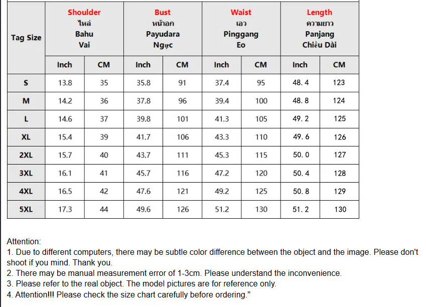 2. Please check the size chart carefully before you buy the item, if you don't know how to choose size, please contact our customer service.