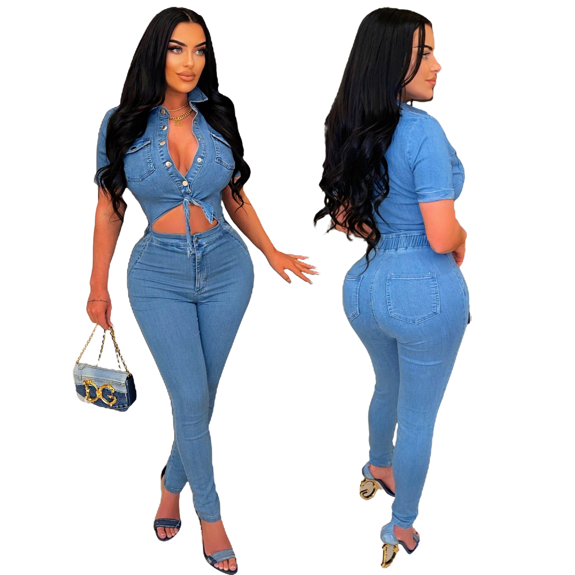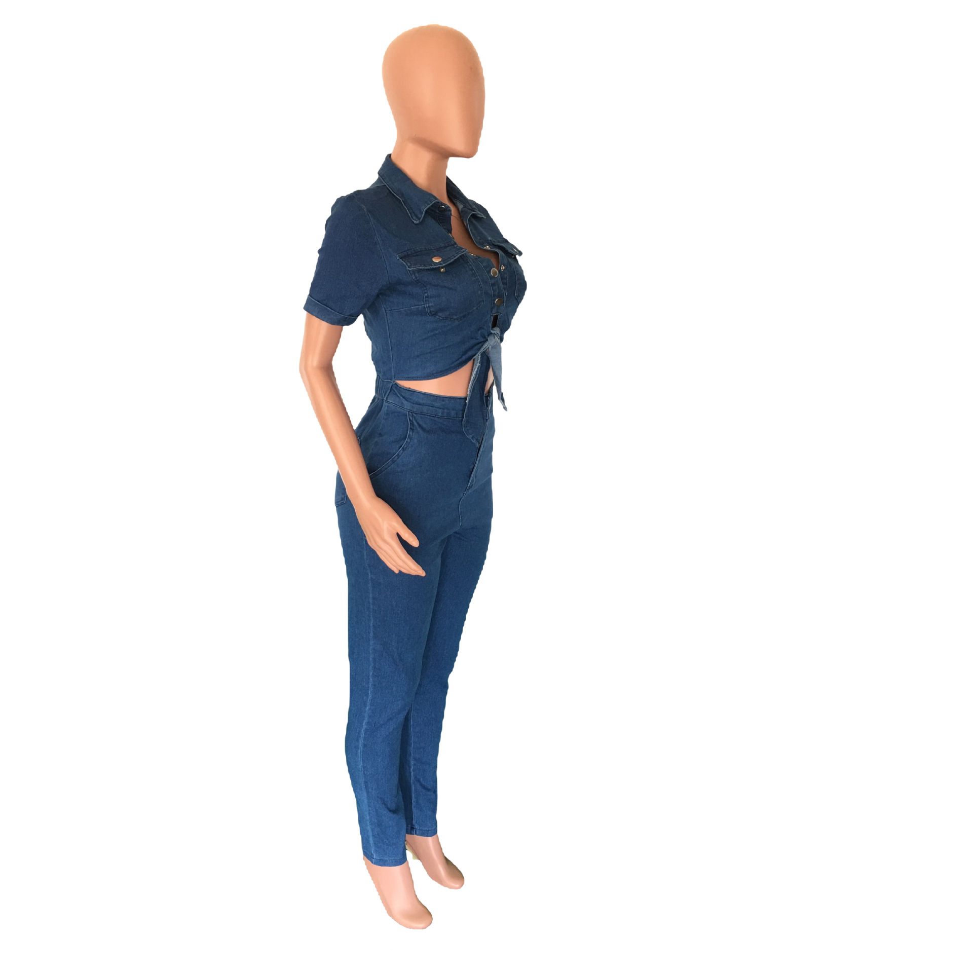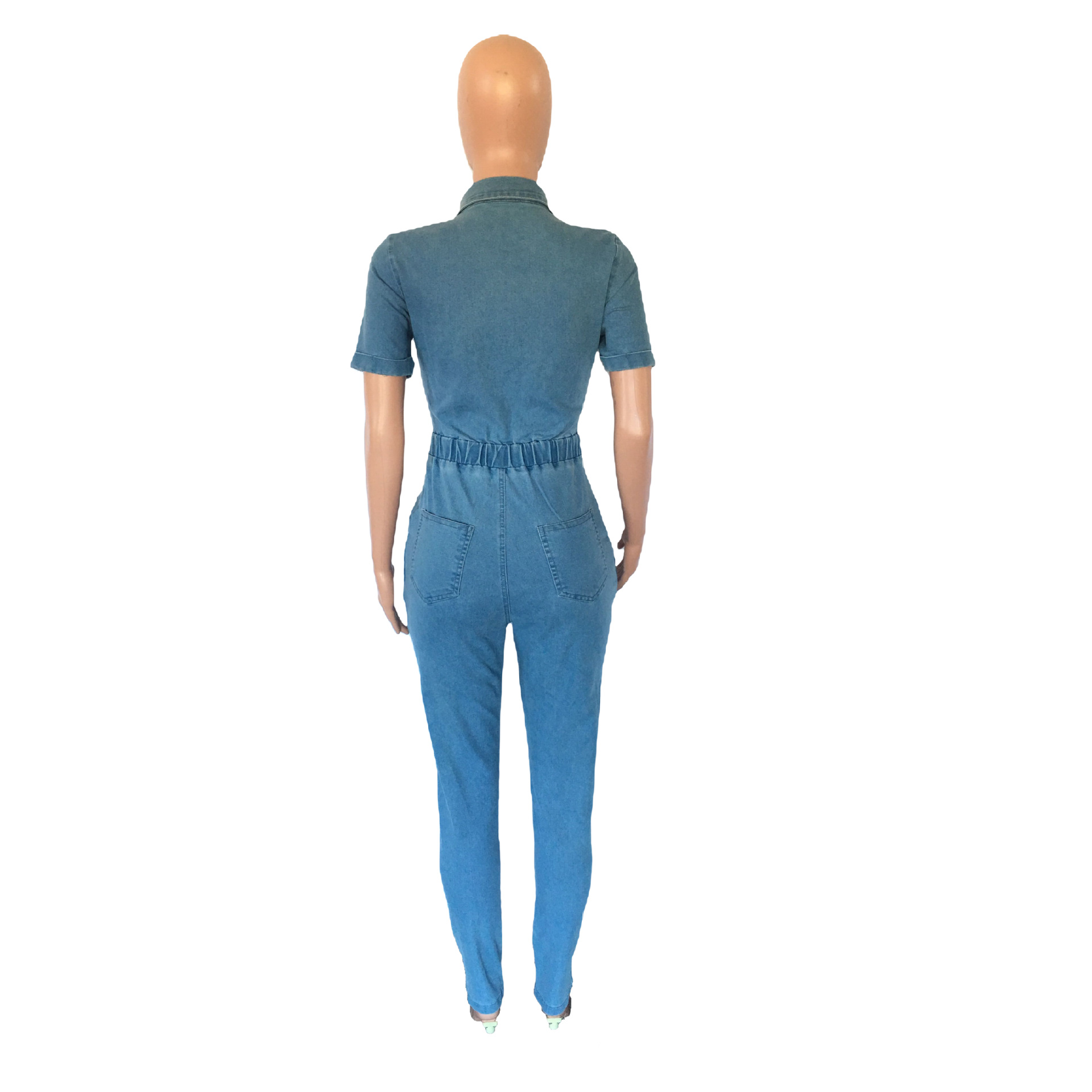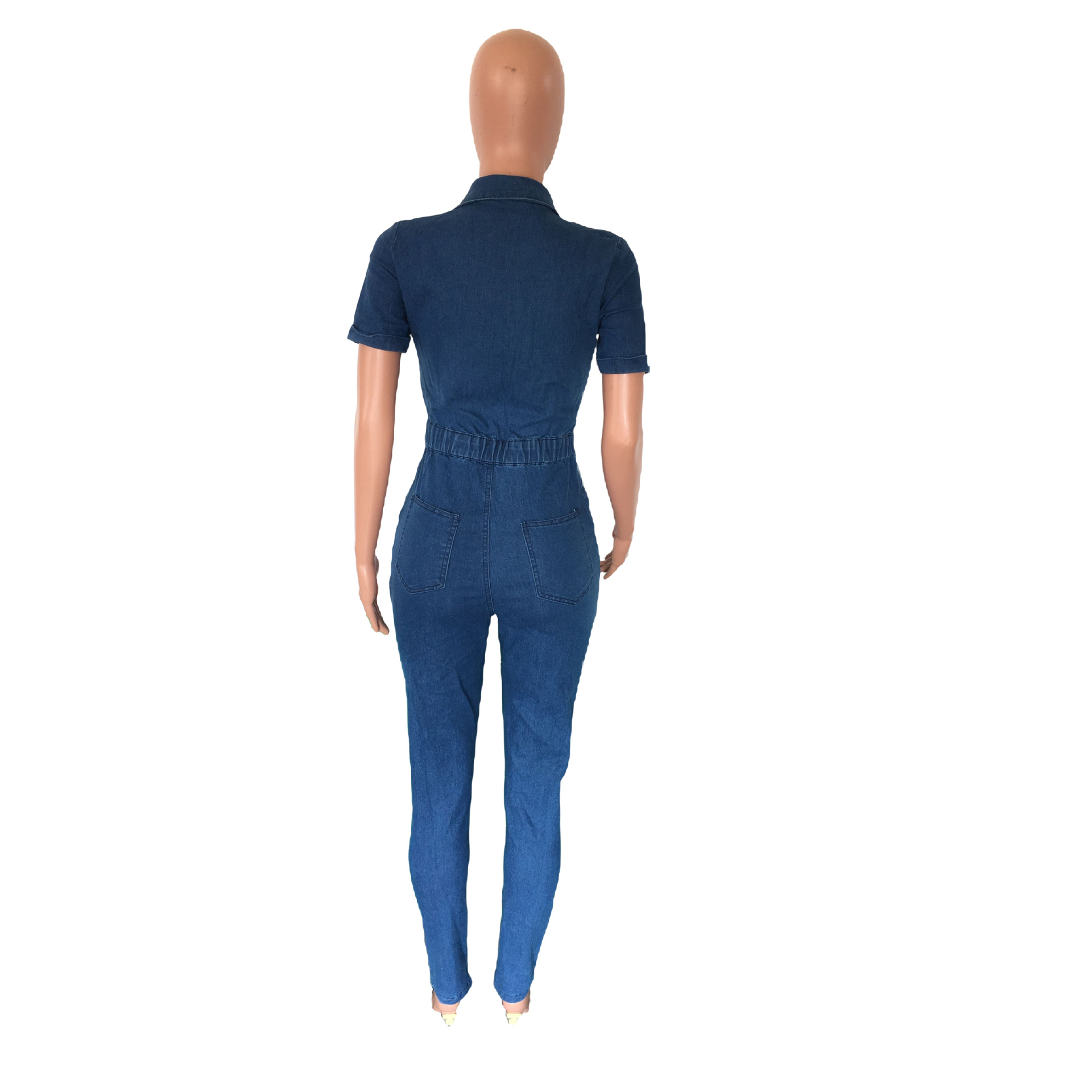 Slim Fit Fashion Short Sleeve Denim Jumpsuit