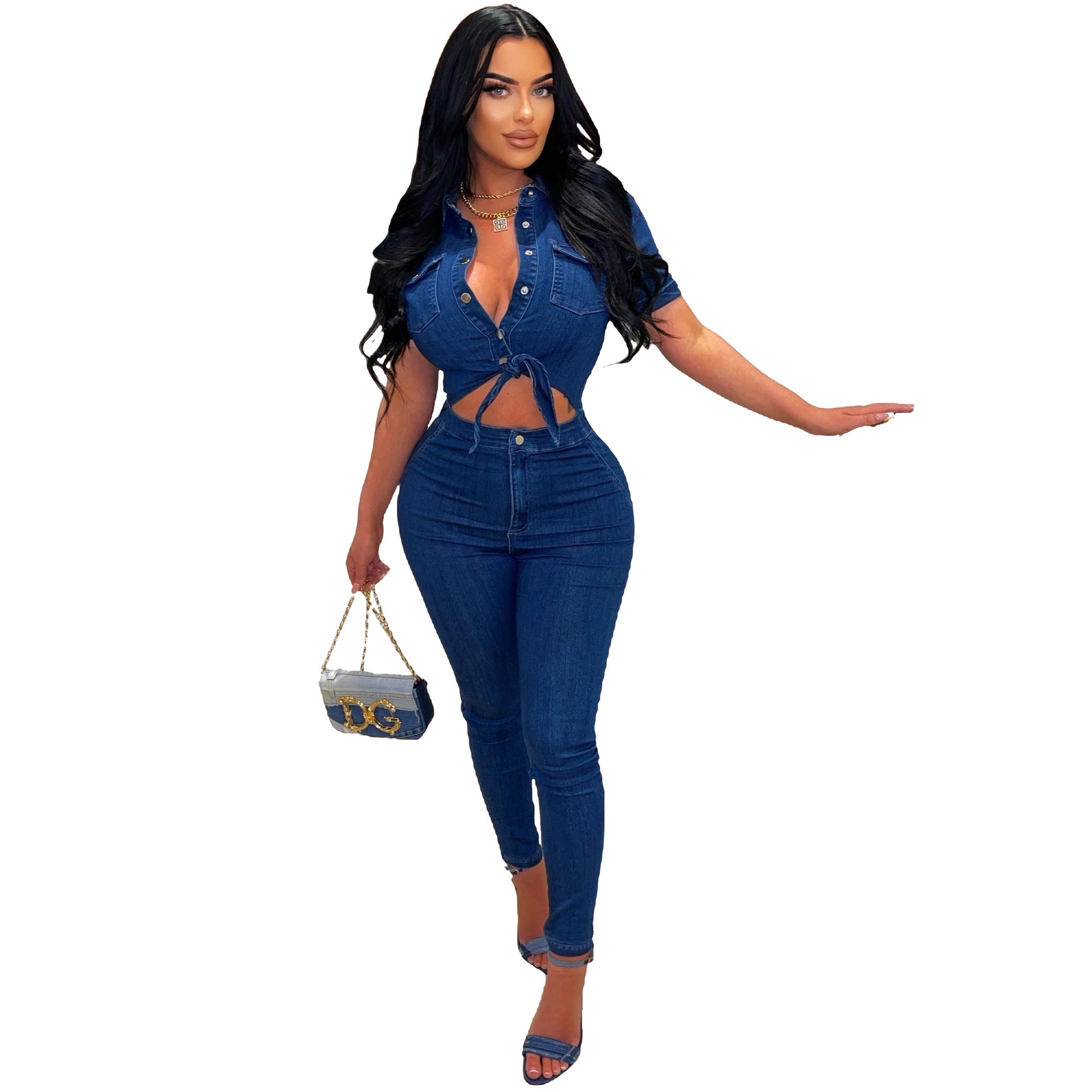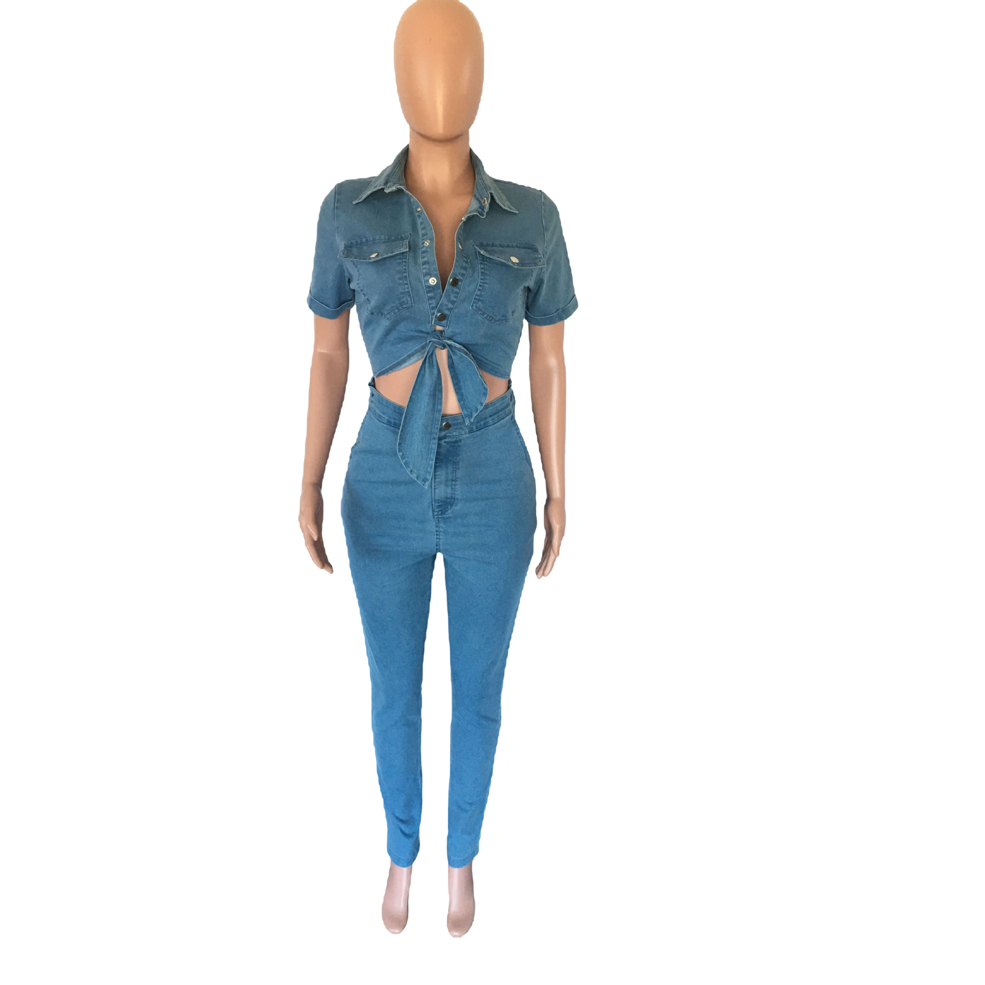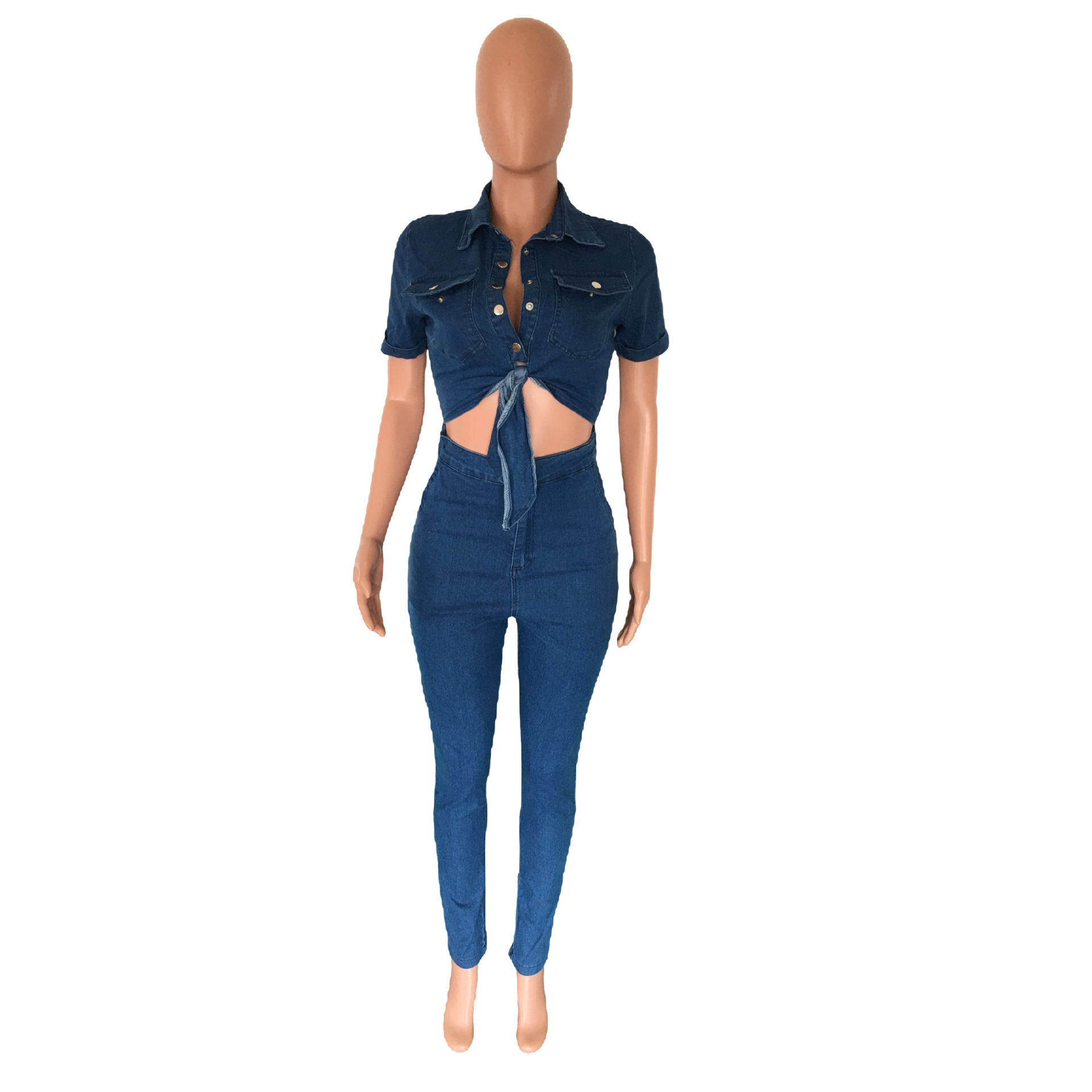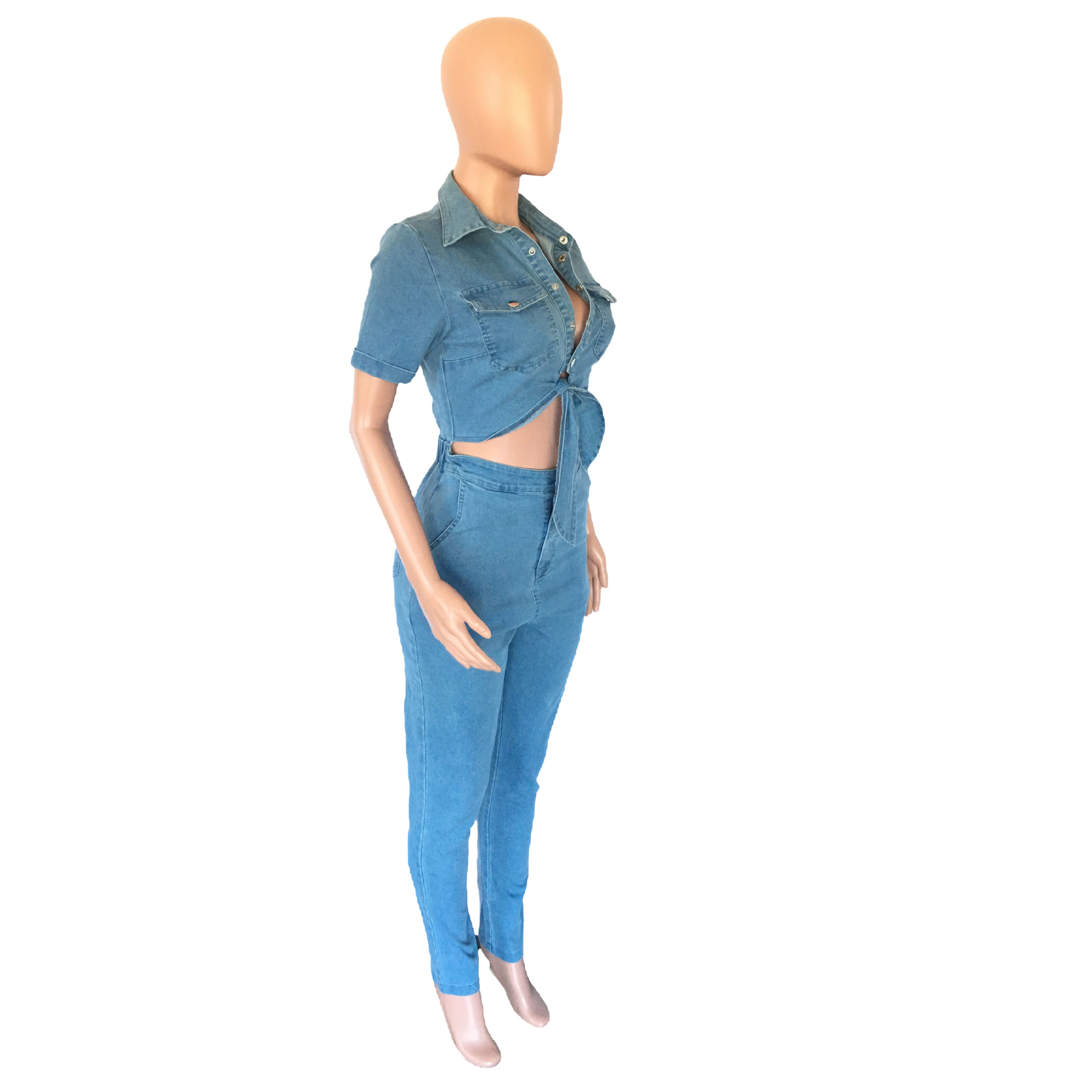 Slim Fit Fashion Short Sleeve Denim Jumpsuit