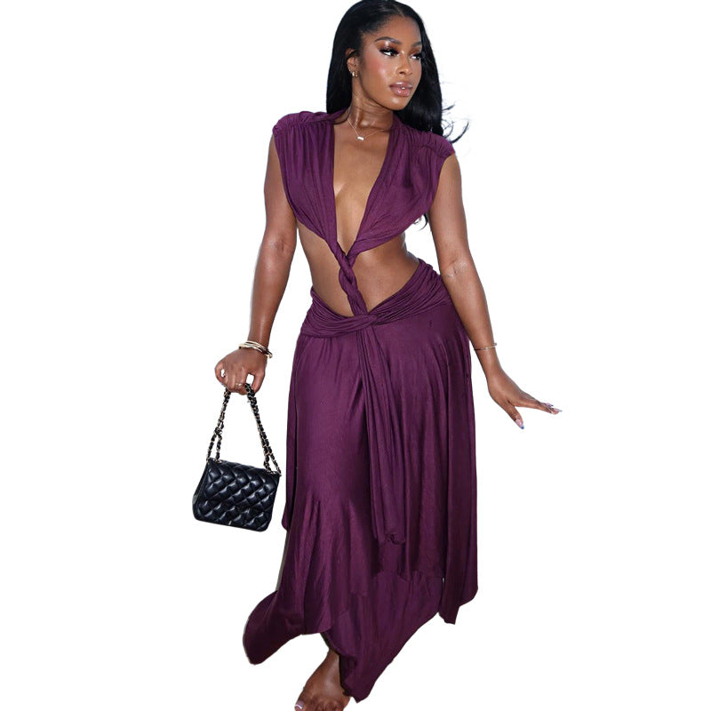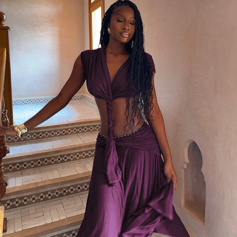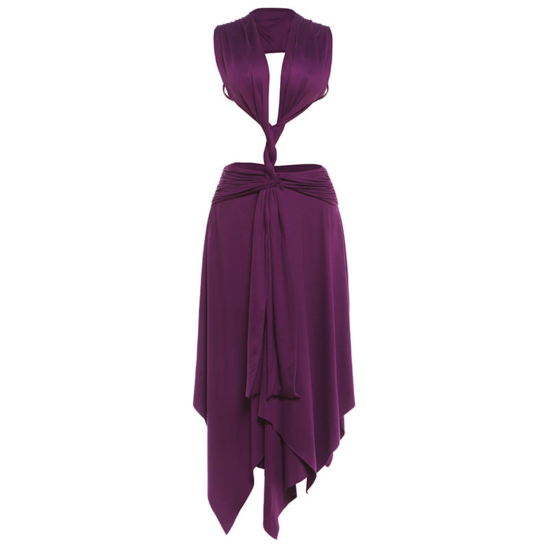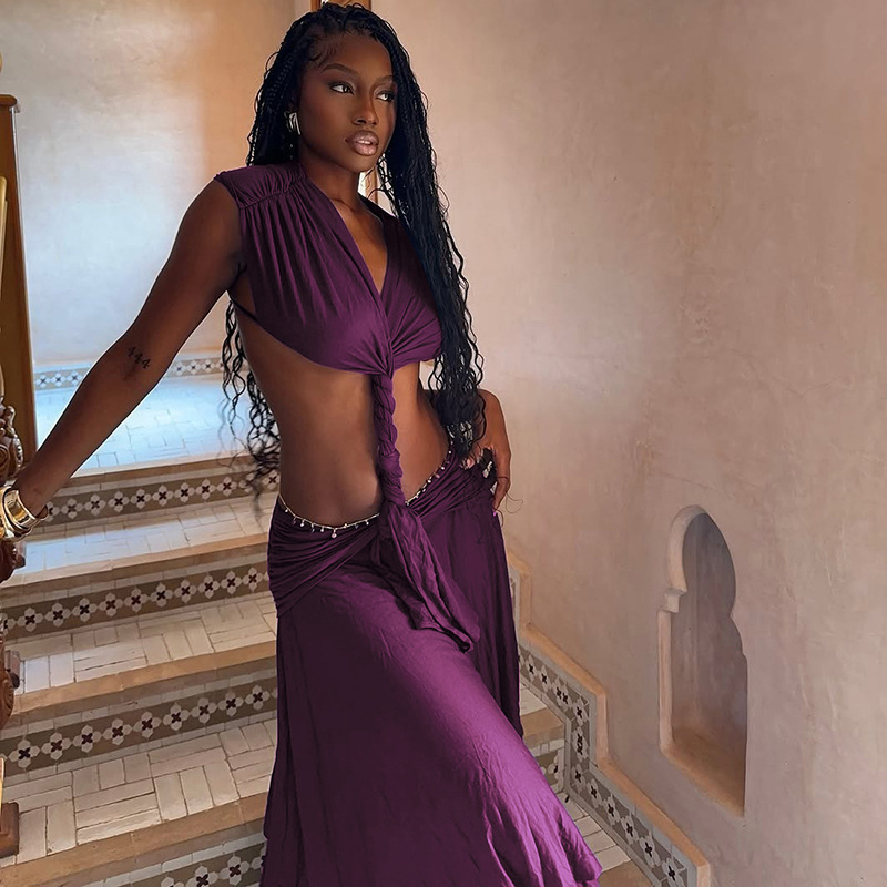 Trendy Elements: Solid Color, Open Back, Patchwork, Knot Detail