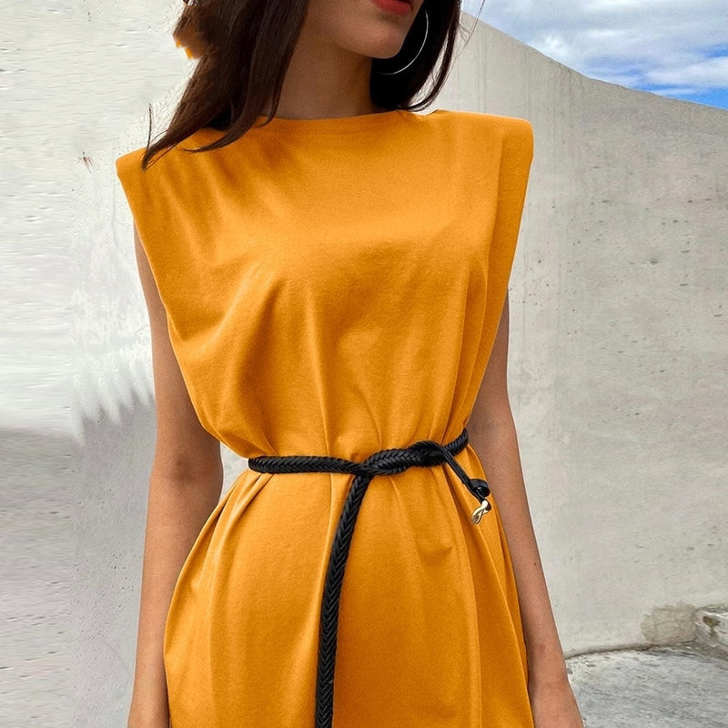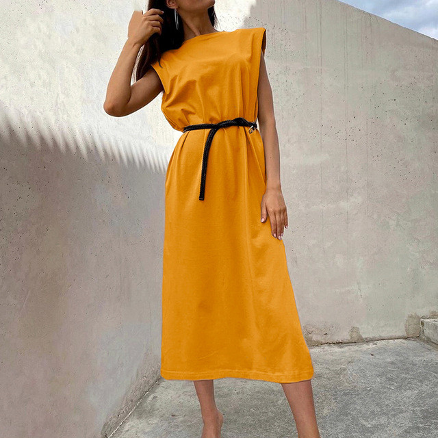 • Solid Color Slit Sexy Casual Sleeveless Round Neck Straight Midi Dress