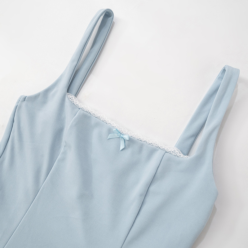 Popular elements: square collar, sling, waist girdle, hip wrap. A- line skirt, slimming