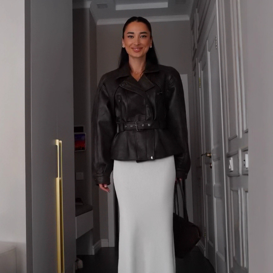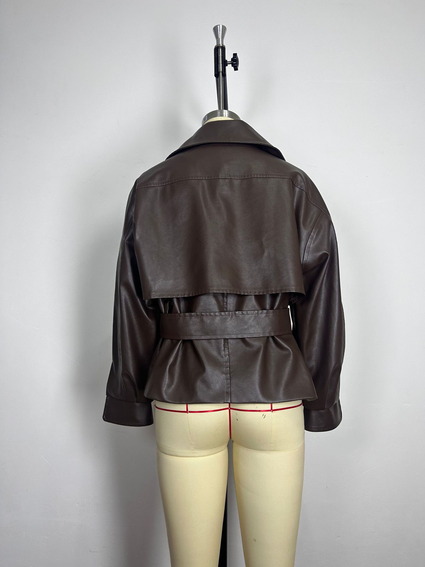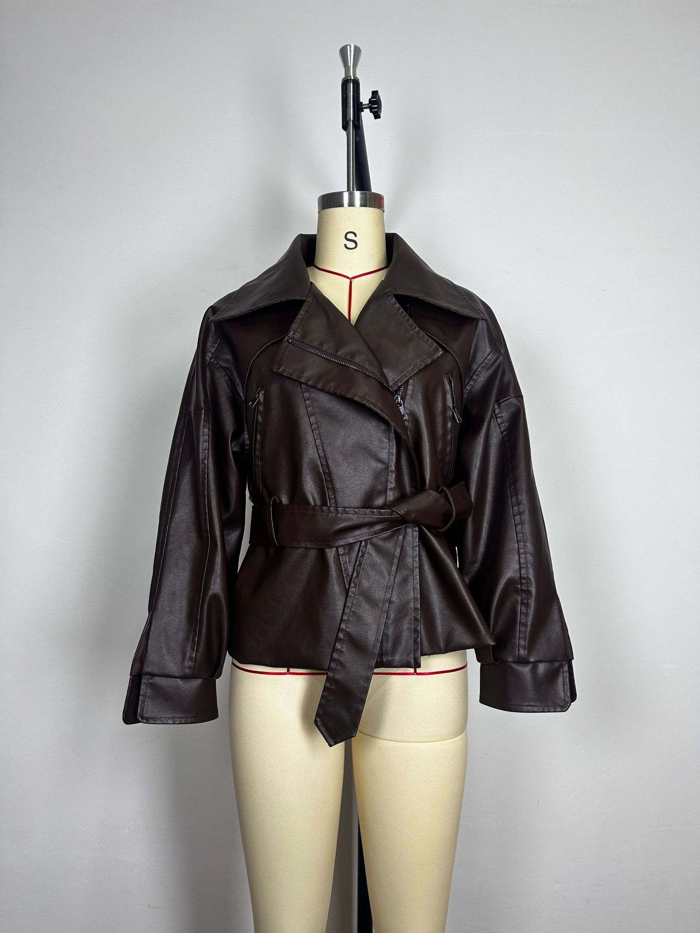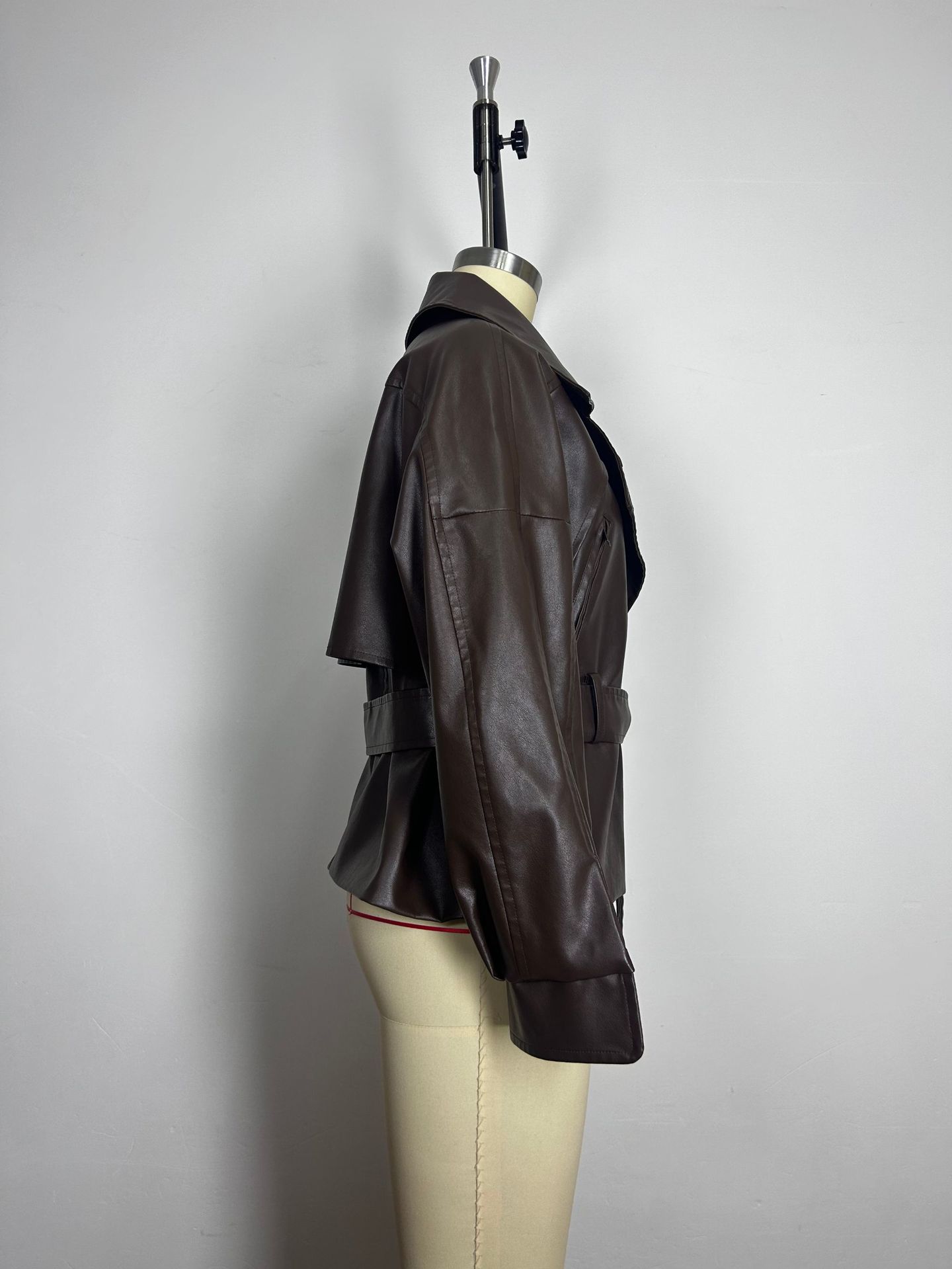 • Stylish Trendy Heavily Detailed Belt Jacket Leather Outerwear
