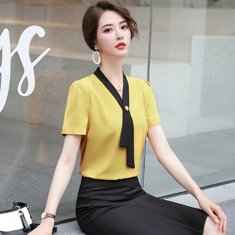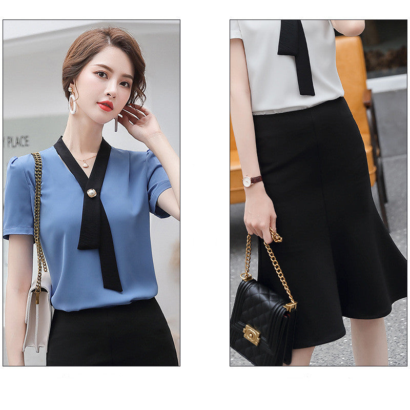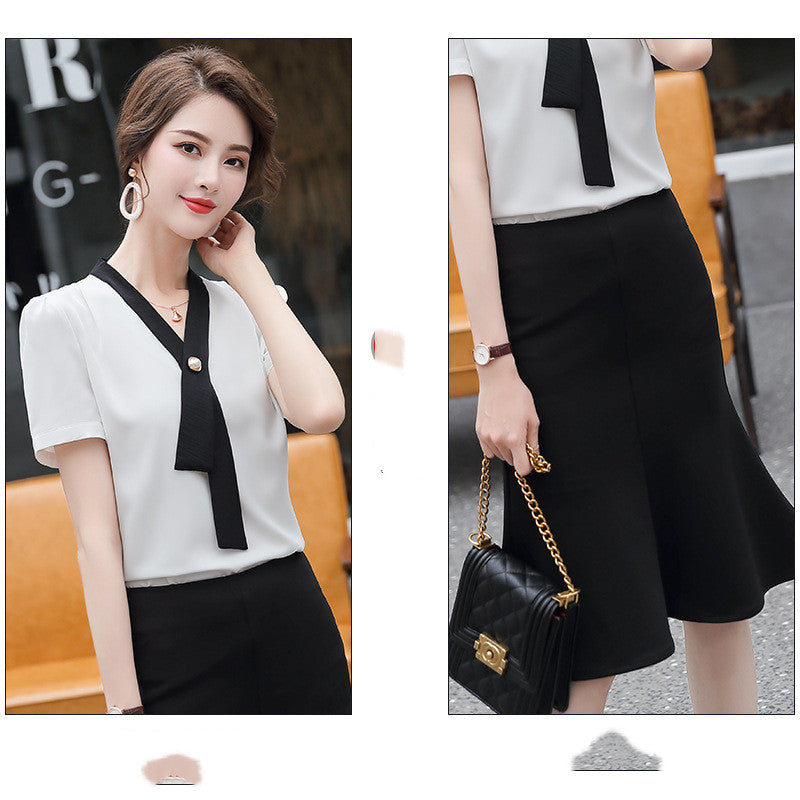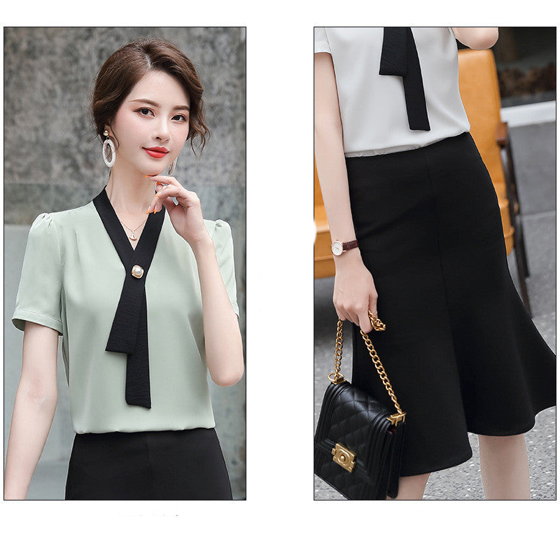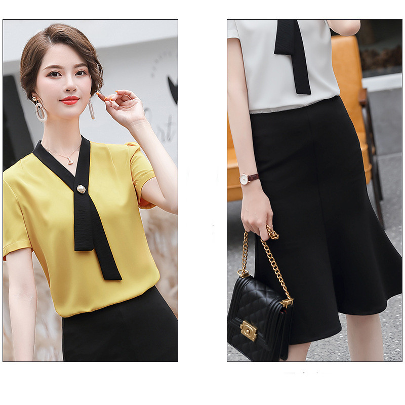 Color: white shirt, yellow shirt, blue shirt, apple green shirt, white shirt + black skirt, yellow shirt + black skirt, blue shirt + black skirt, apple green shirt + black skirt