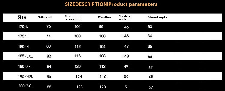 Size:170/M,175/L,180/XL,185/XXL,190/XXL,195/XXXXL,200/5XL,205/6xl