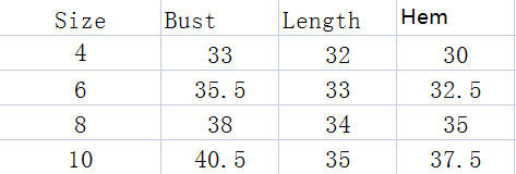 Size: 4,6,8,10