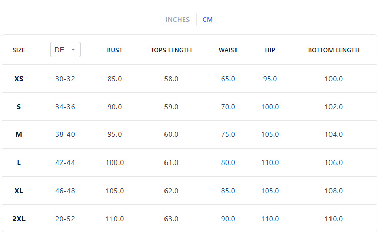 Sizes: XS, S, M, L, XL, XXL