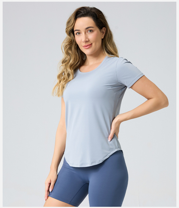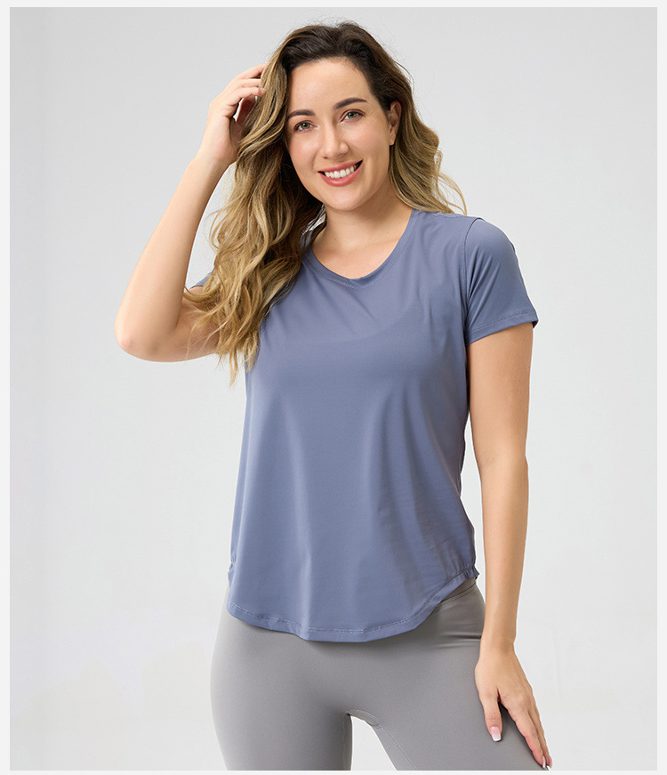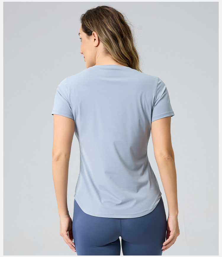 Womens Breathable Bare-Look Yoga Short-Sleeve Top