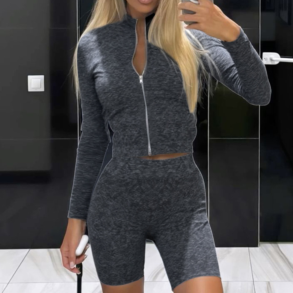 Womens Casual Jacket, Cropped Outerwear, Capri Pants, And Sportswear Set