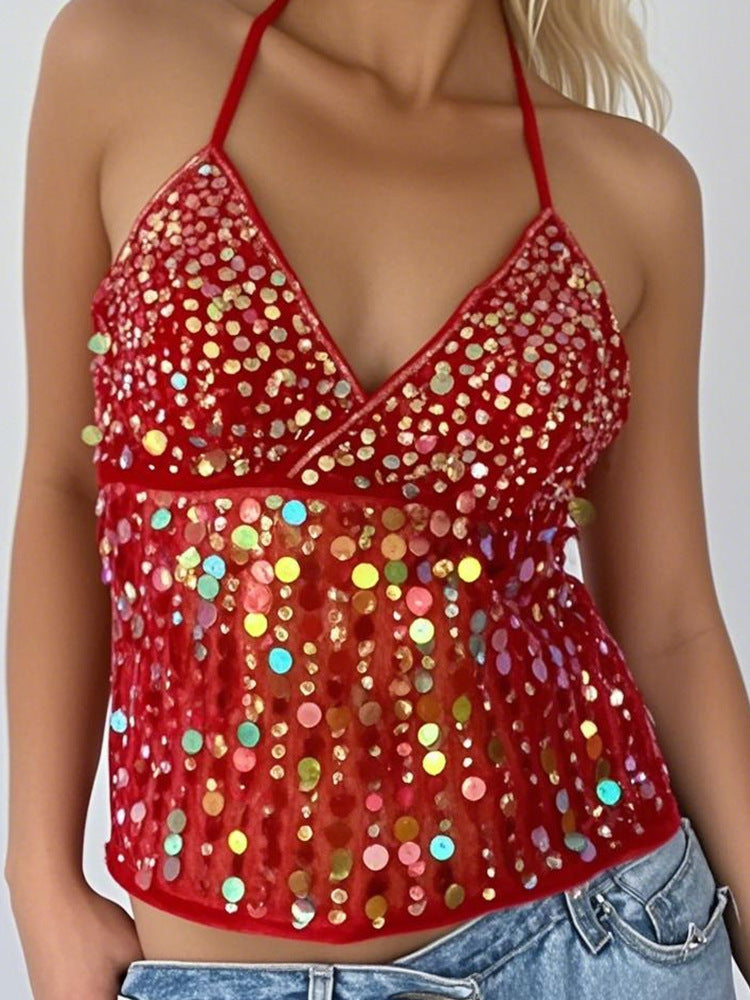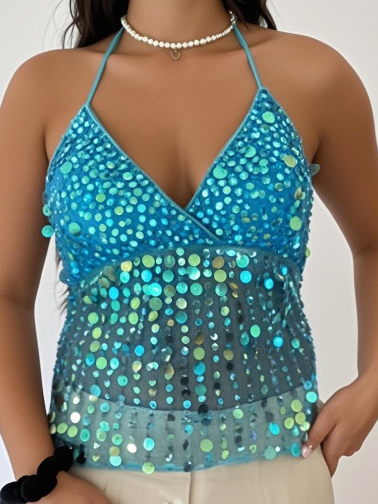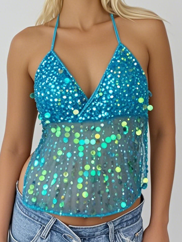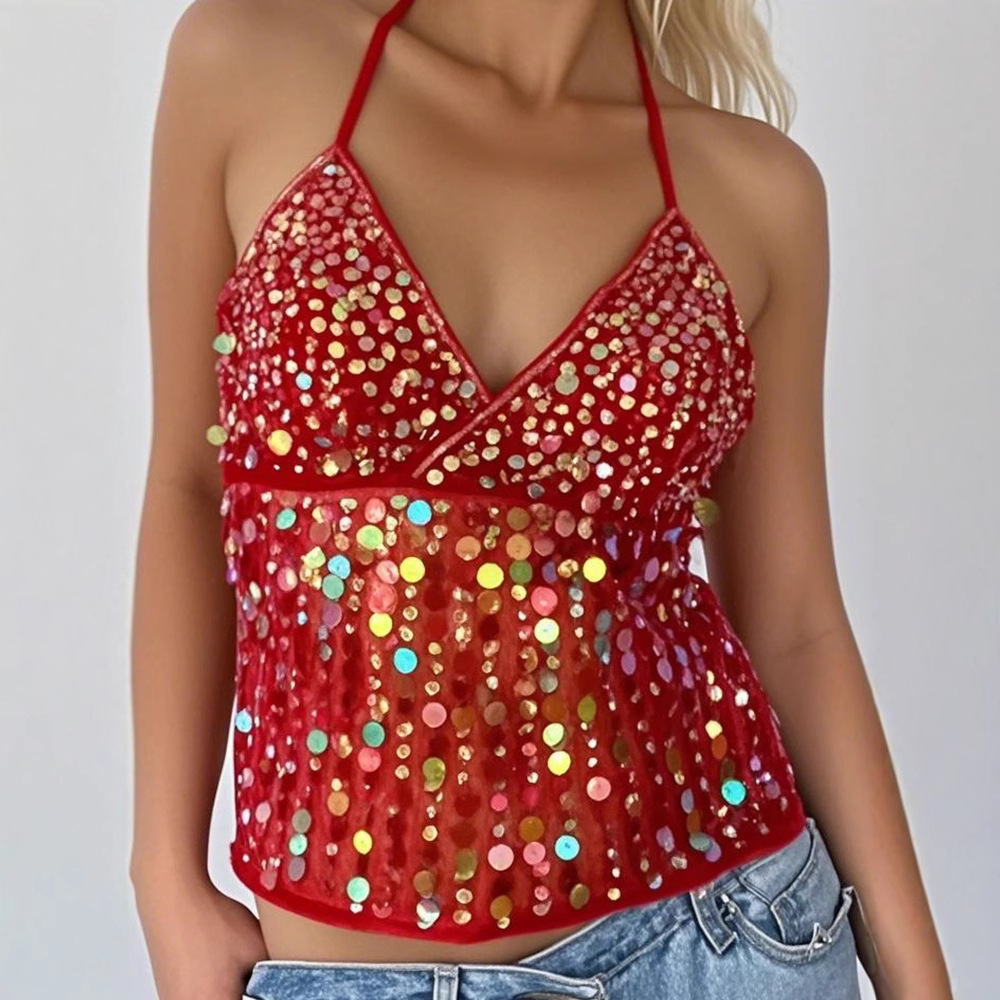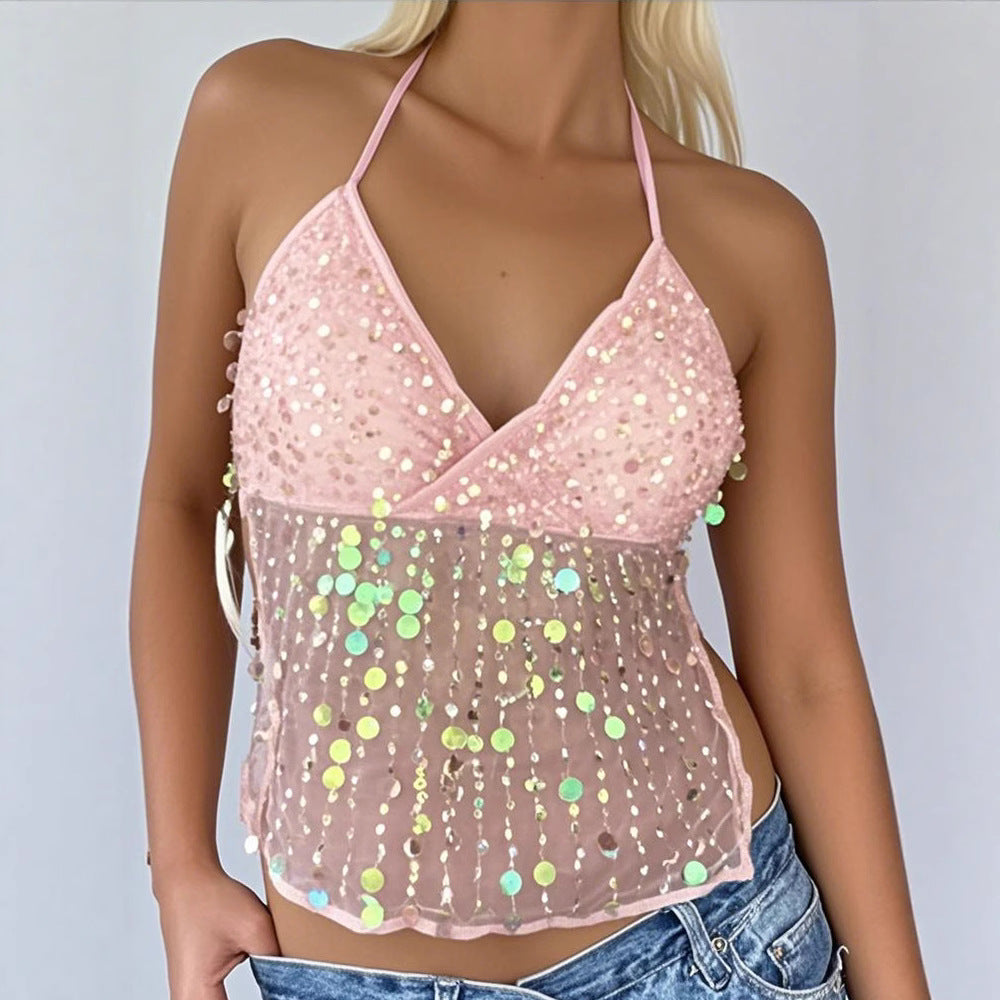 Women's Dopamine Sequined Suspender Deep V Strap Top