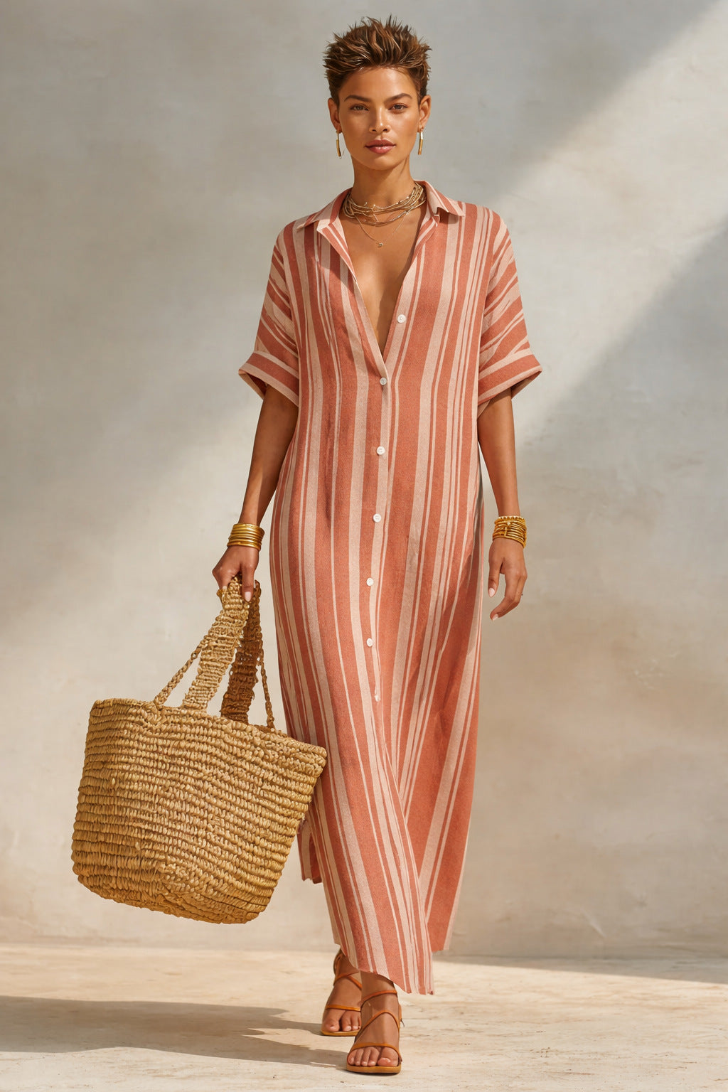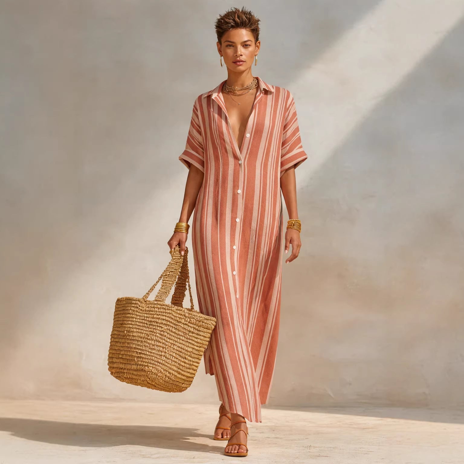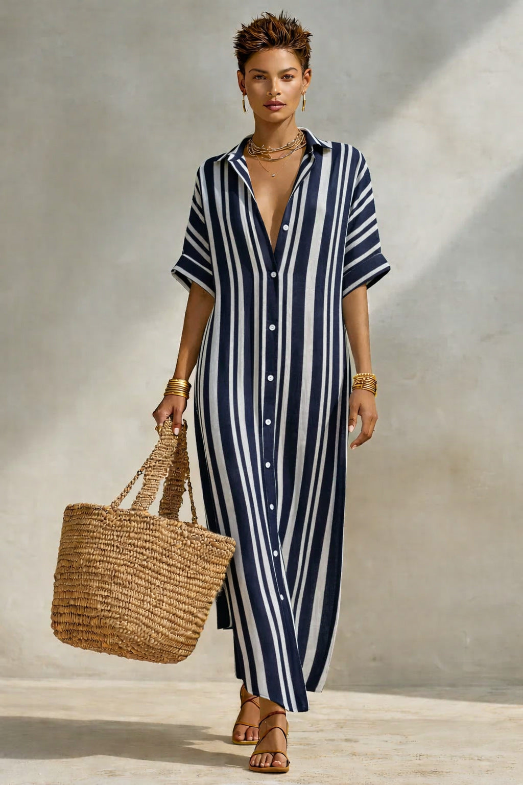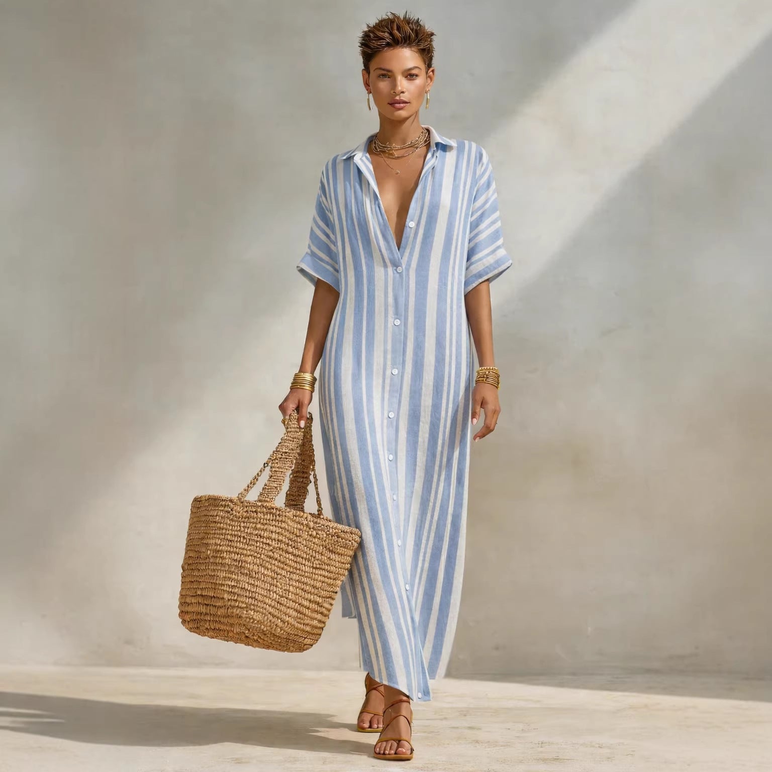 Women's Fashion Loose Casual Striped Shirt Dress