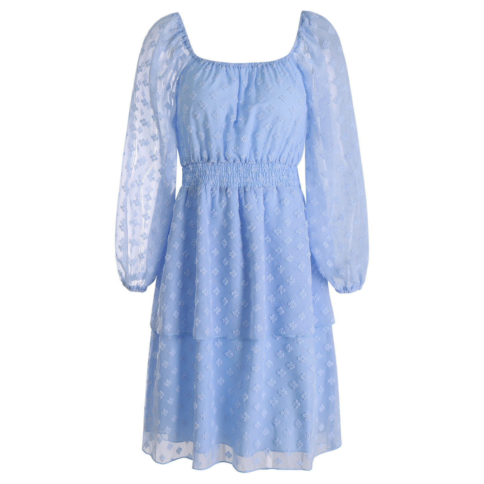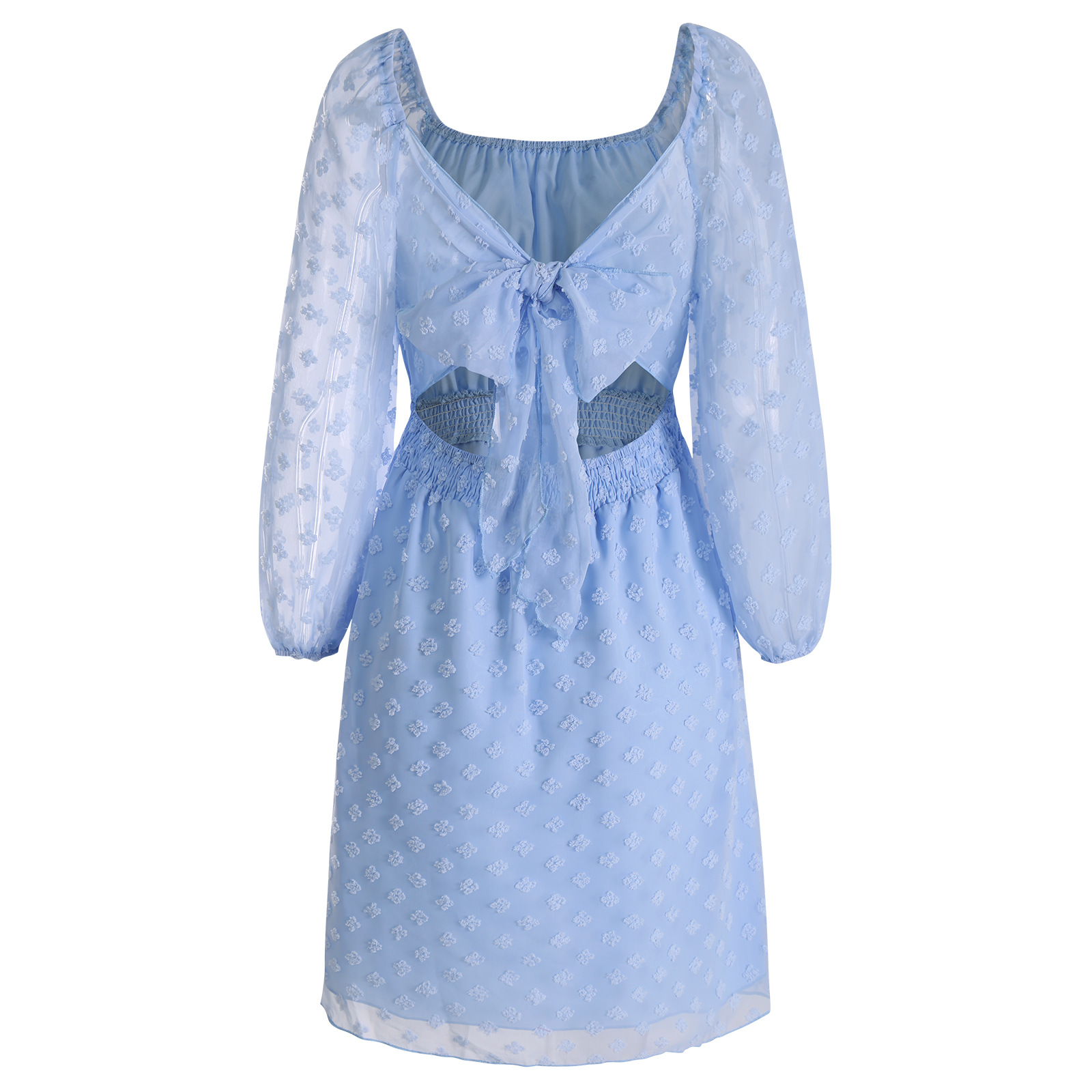 Women's Fashion Square Neck Backless Jacquard Dress