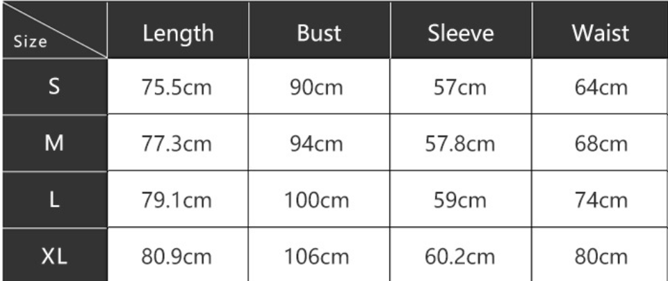 Size: S, M, L, XL unit: cm