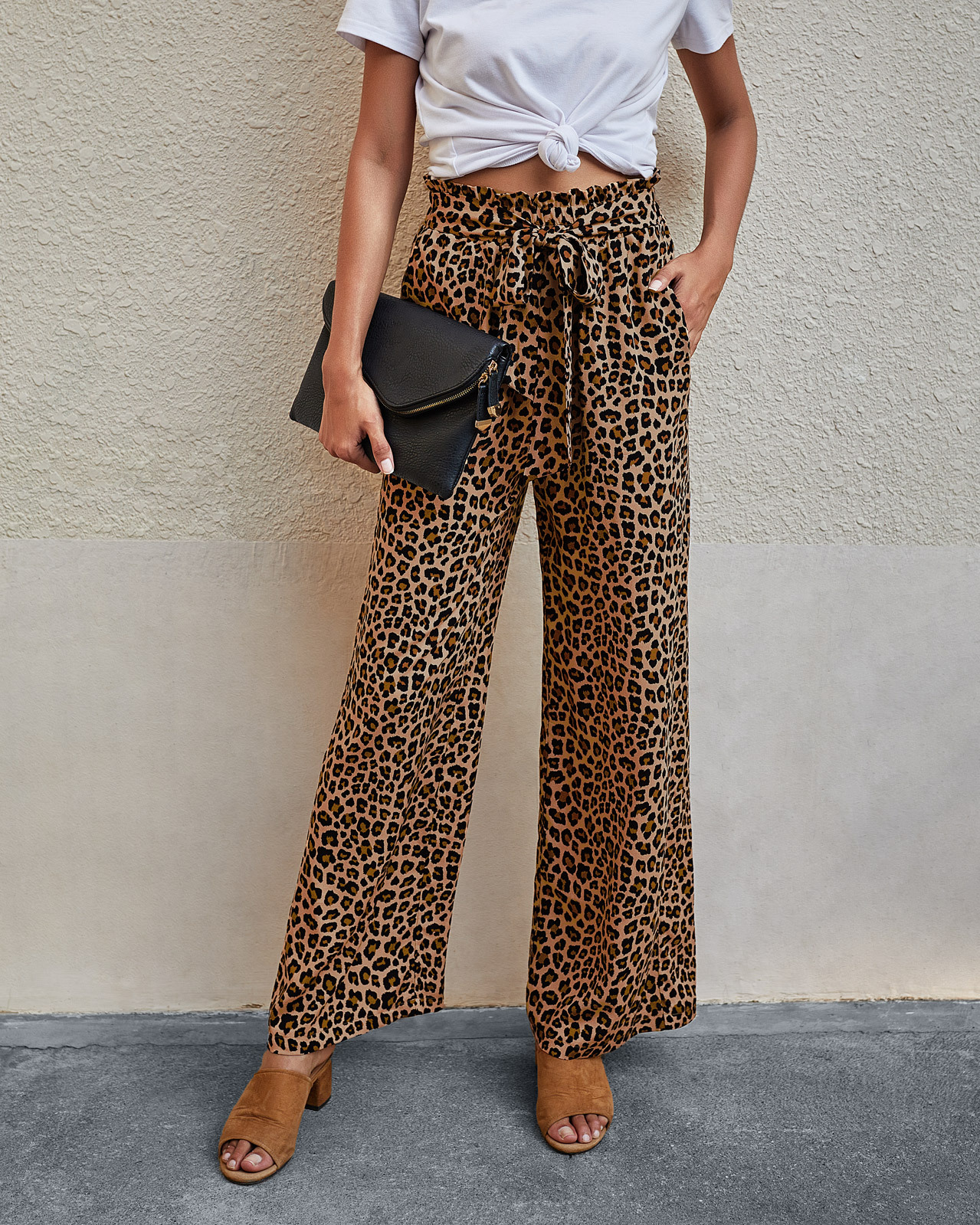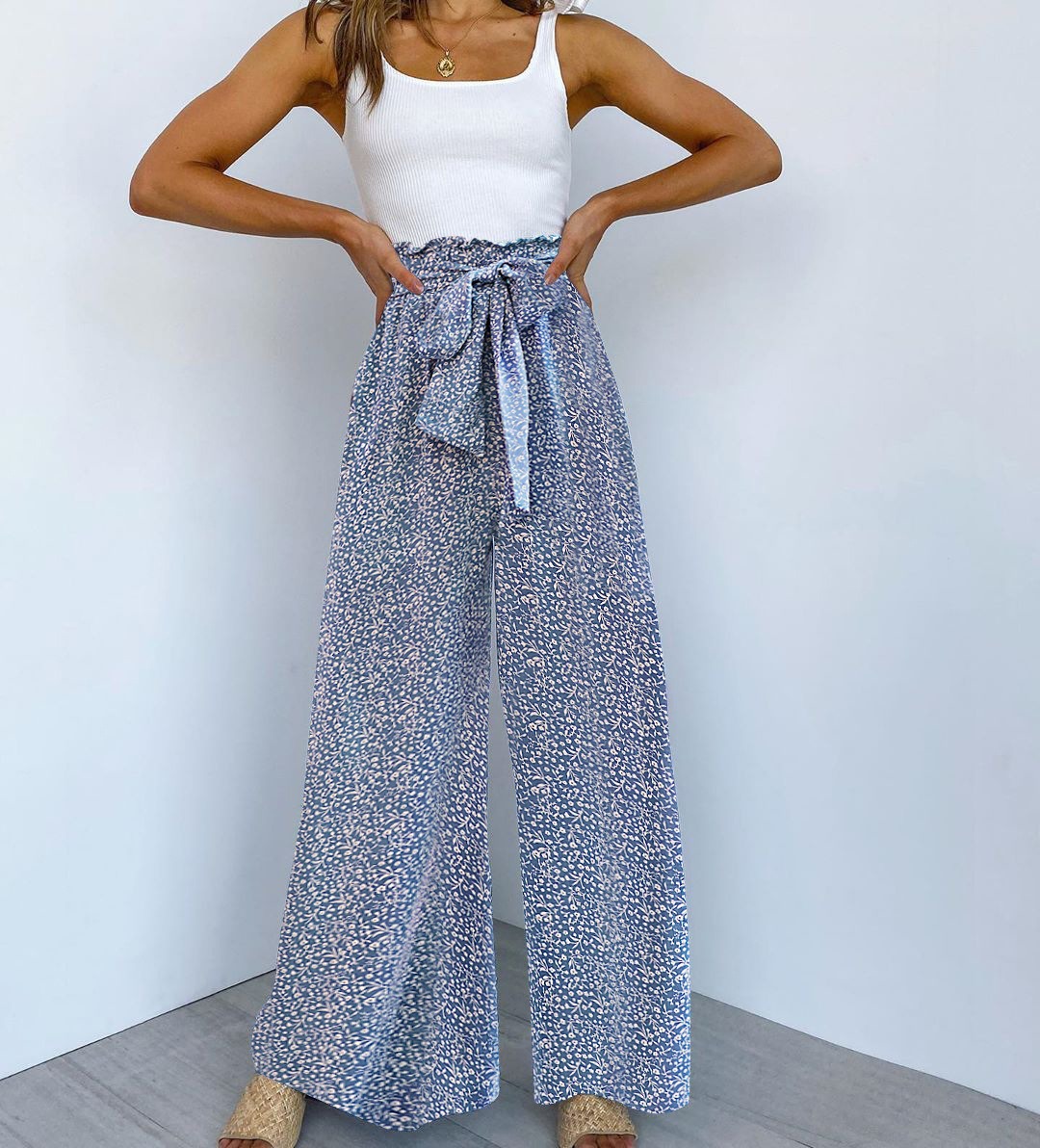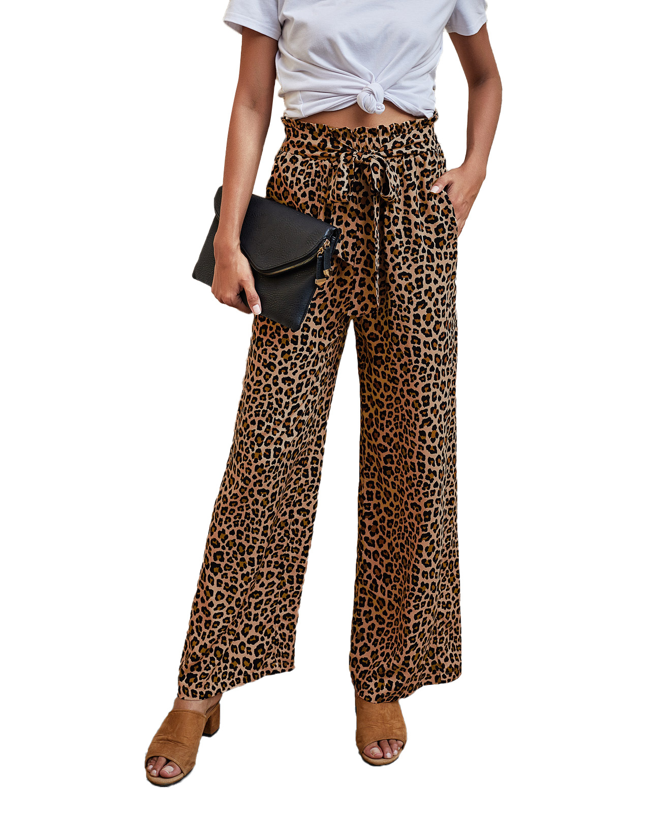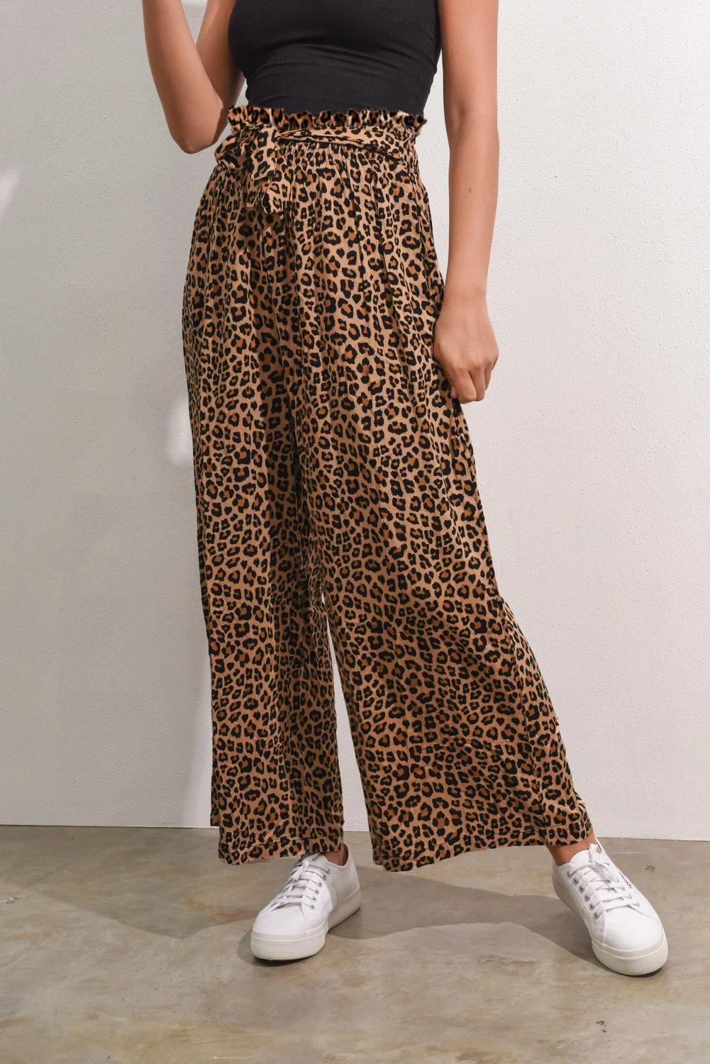 • Women's Fashionable Leopard Print Lace-up Wide-leg Trousers